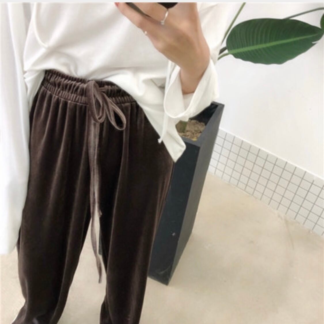 【お取り寄せ商品】ベルベット ワイドパンツ ボトム 韓国 ハイウエスト アンティーク風
