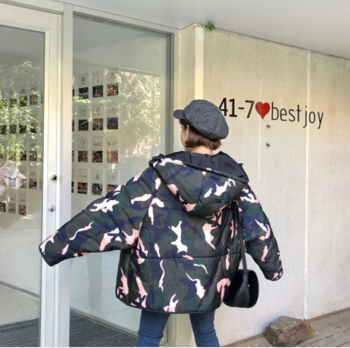 【お取り寄せ商品】ダウン リバーシブル 迷彩 カモフラージュ 2way アウター 冬 レディース フード ジッパー