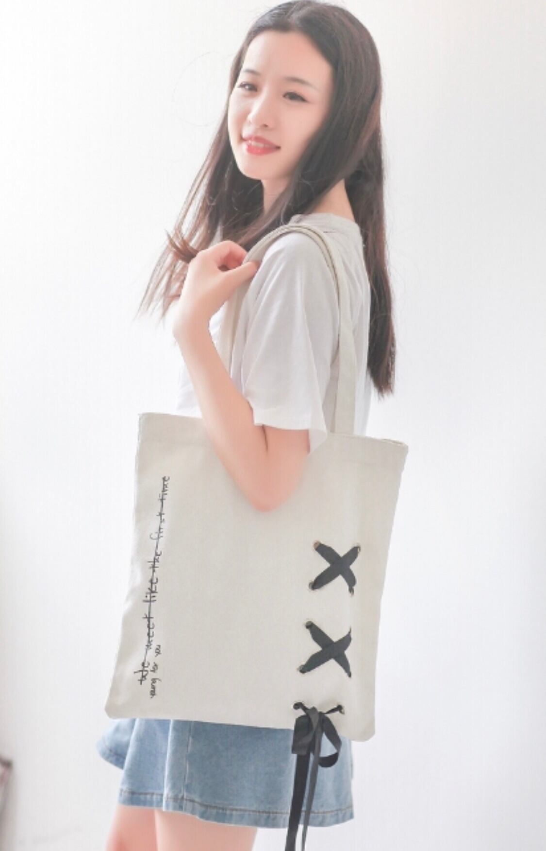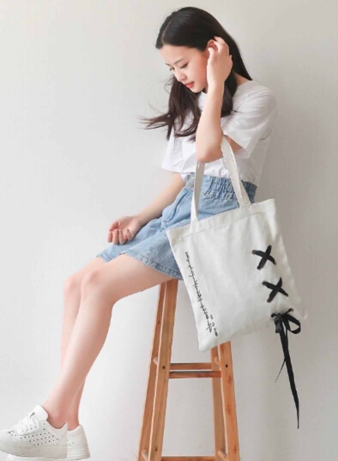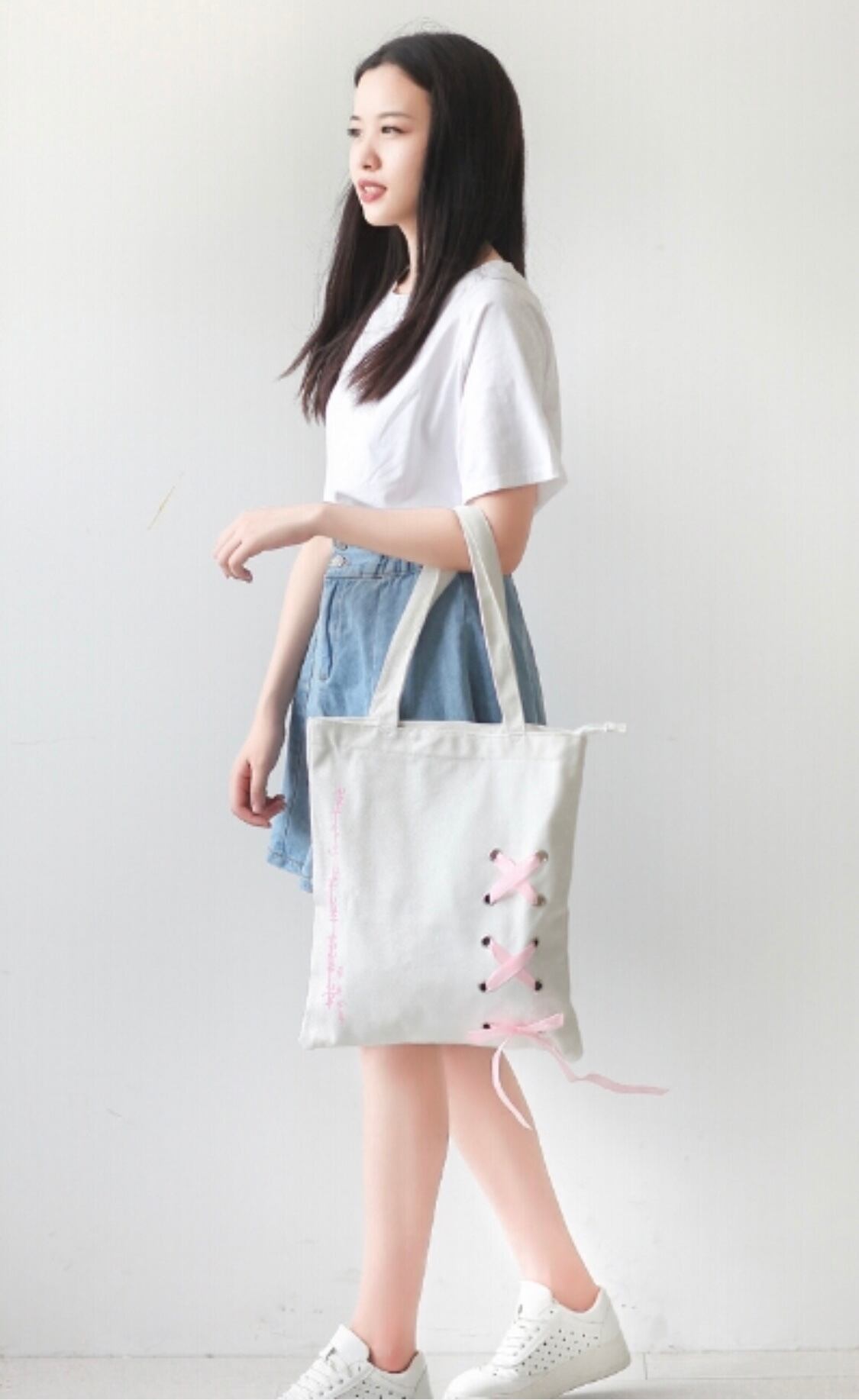 レースアップの可愛いトートバッグです