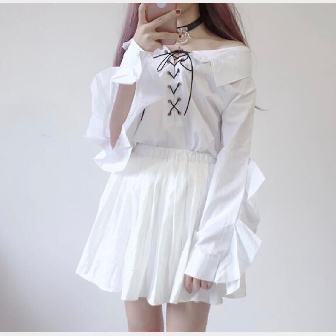 レースアップ シャツ レディース トップス リボン ゆめかわいい 病みかわいい シンプル 韓国 ゆったり