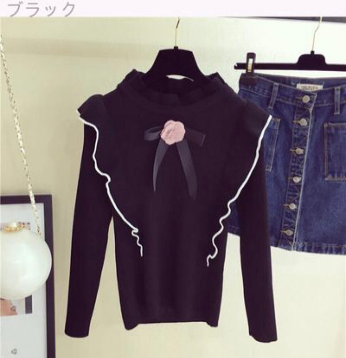 【お取り寄せ商品】トップス レトロ アンティーク風 エレガント バラ リボン フリル セーター 韓国 秋 冬 春 長袖