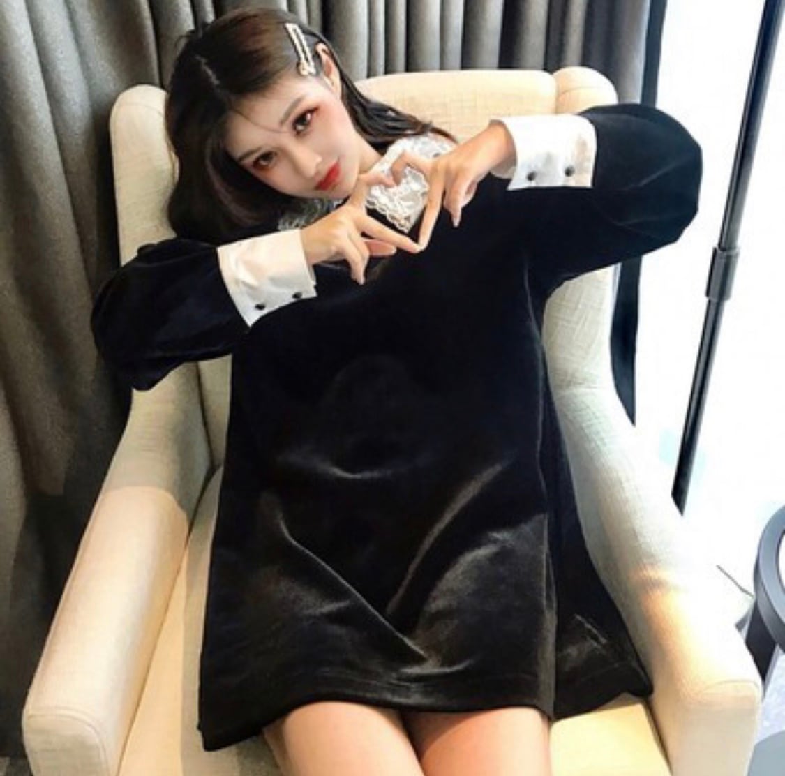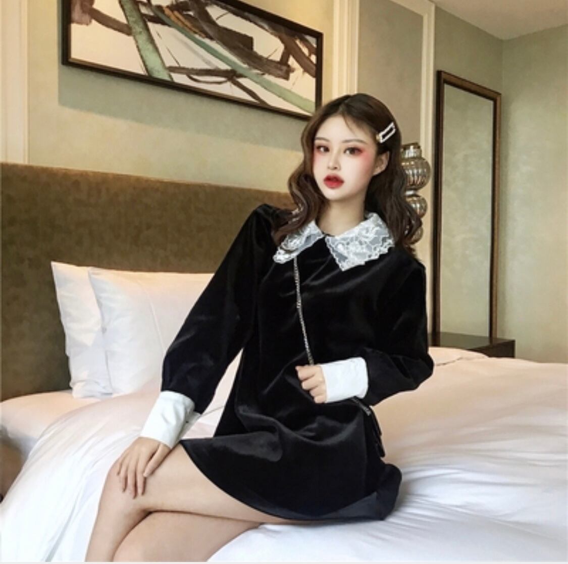 【お取り寄せ商品】ワンピース ベルベット フリル レース 襟 ゆめかわいい 病みかわいい レディース 韓国 レトロ アンティーク風