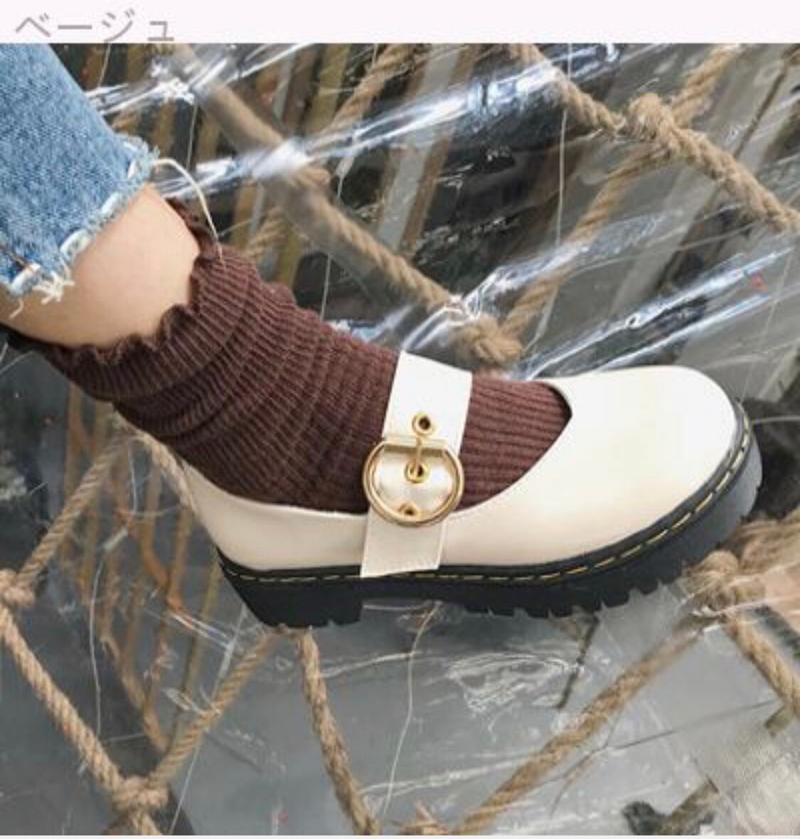 【お取り寄せ商品】靴 シューズ パンプス 革靴 レディース 韓国 原宿 ゆめかわいい レザー ベルト レトロ アンティーク風 かわいい 丸い