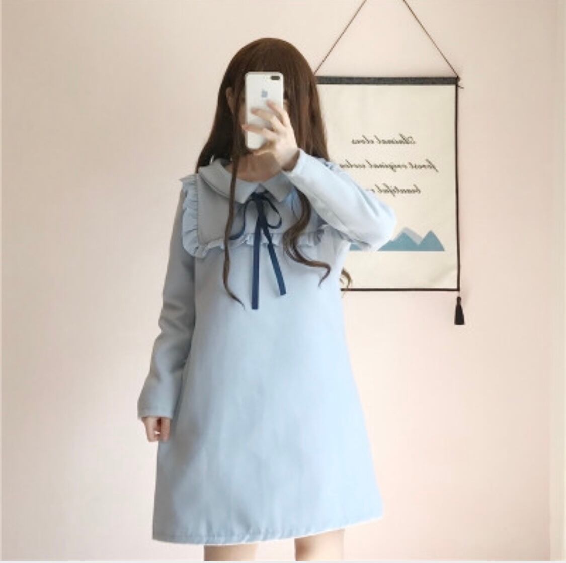 【お取り寄せ商品】ワンピース フリル リボン ゆめかわいい 乙女 スウィート レディース 韓国 長袖 Aライン