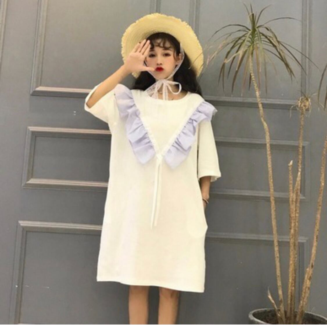 【お取り寄せ商品】トップス ワンピース フリル リボン ゆめかわいい 原宿 サブカルチャー 韓国 レディース 半袖 春 夏 パステル フェアリー ゆったり 着痩せ ビッグTシャツ