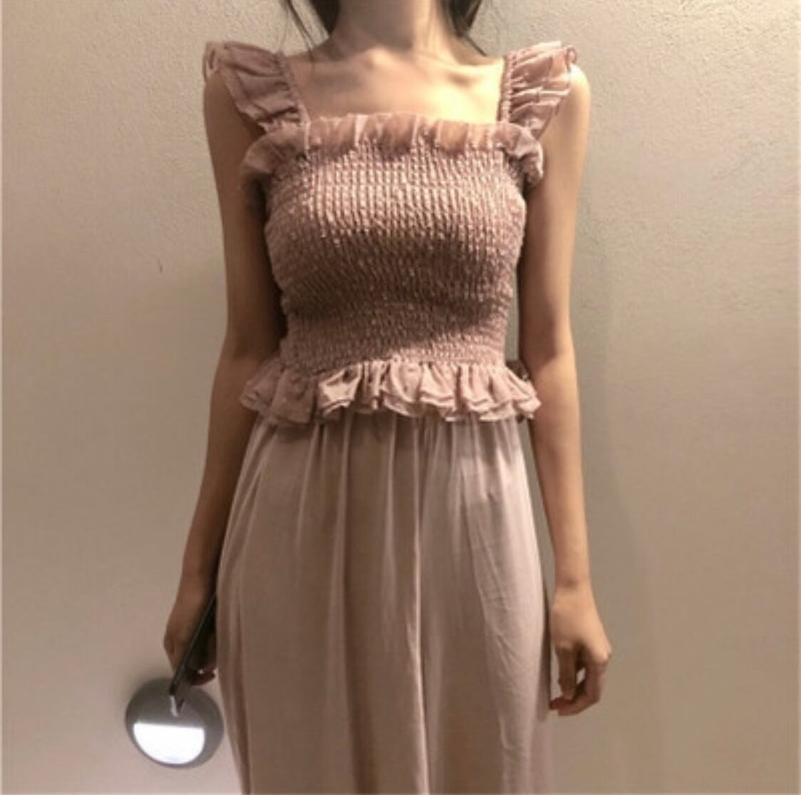 【お取り寄せ商品】オールインワン 春 夏 ボトムス タンクトップ フリル ふんわり レディース 着痩せ フェアリー 大人可愛い ワイドパンツ ボトムス ズボン