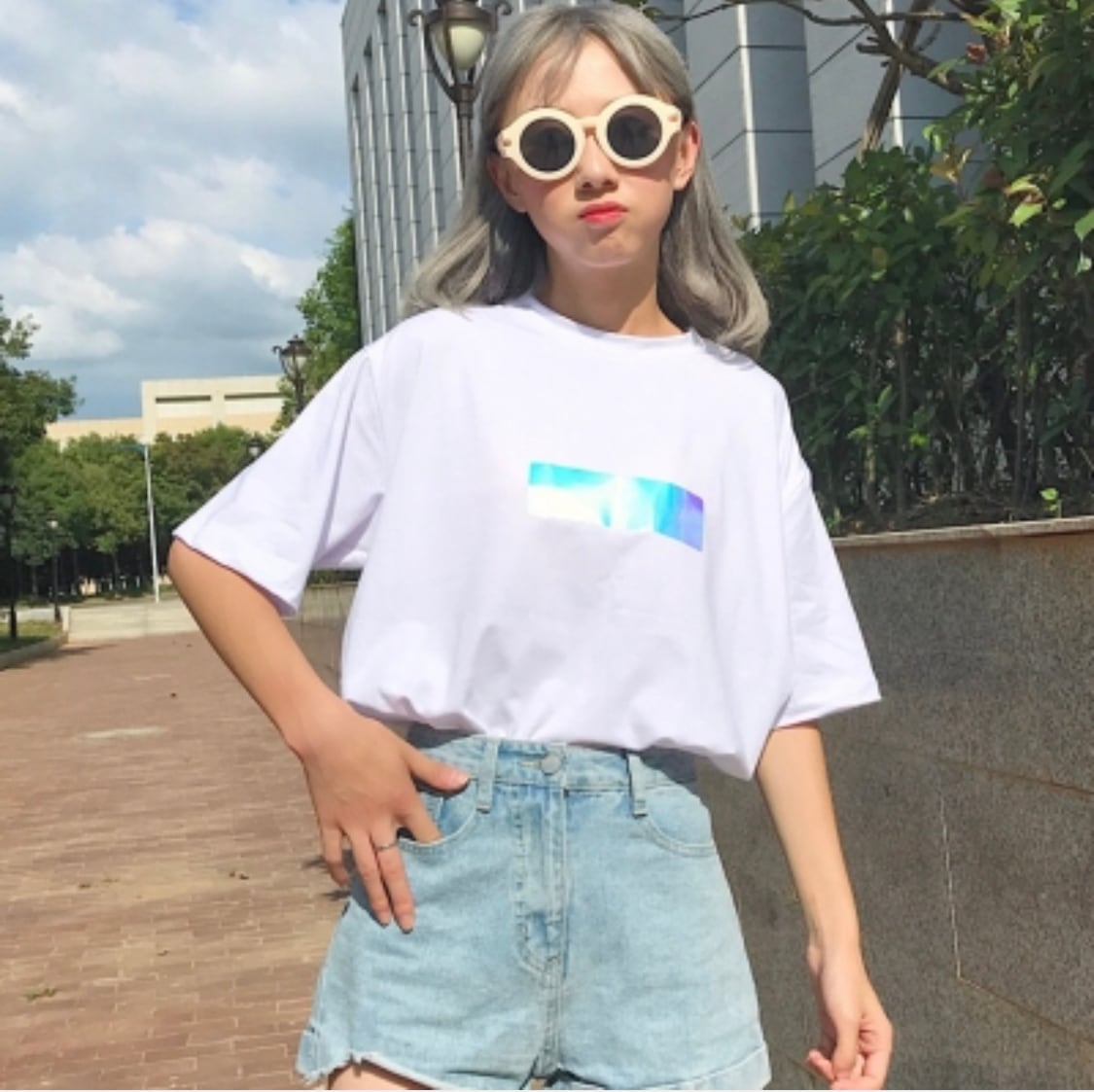 【お取り寄せ商品】Tシャツ 原宿 メタリック 古着 シンプル プリント レディース 夏 半袖