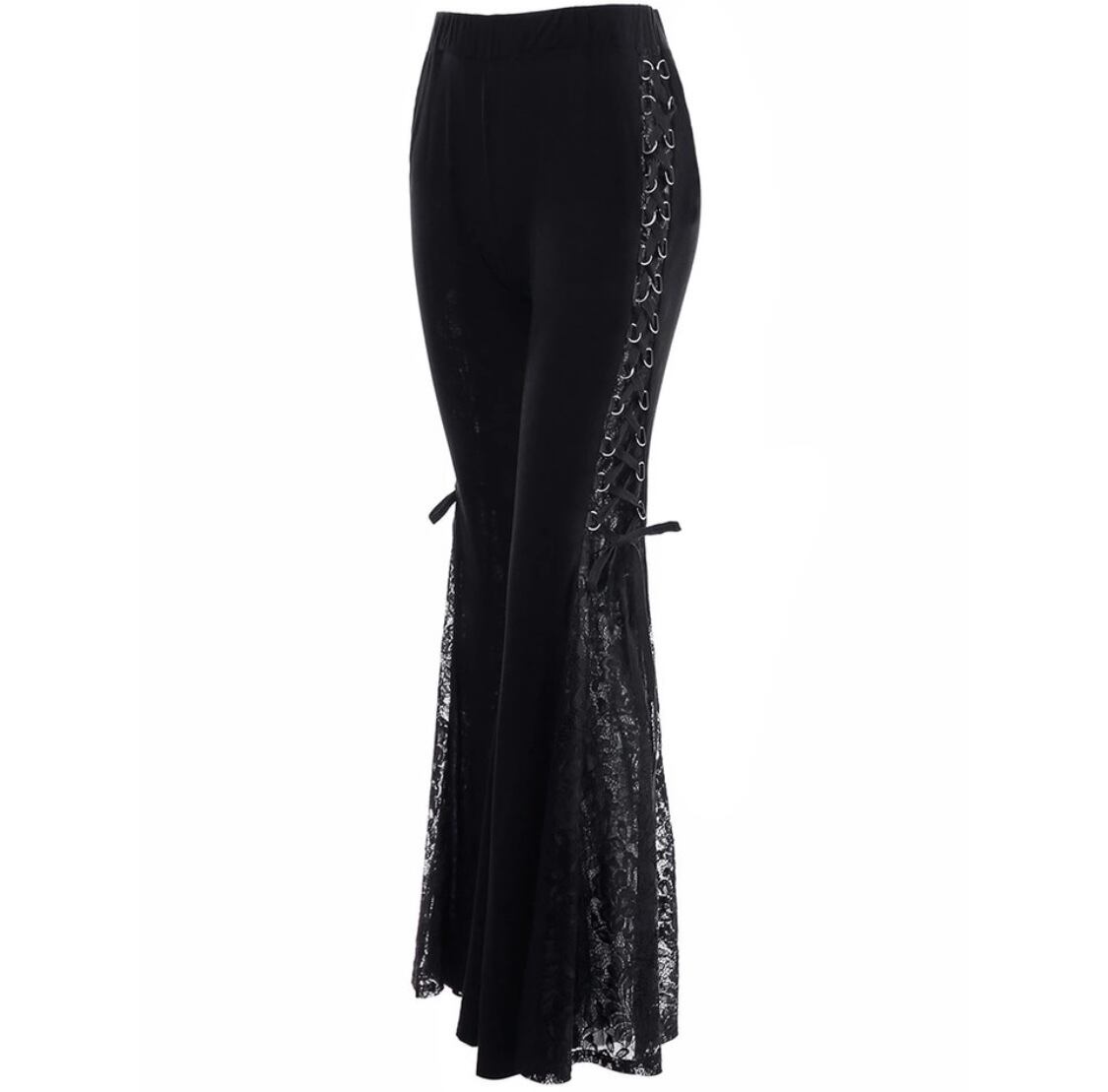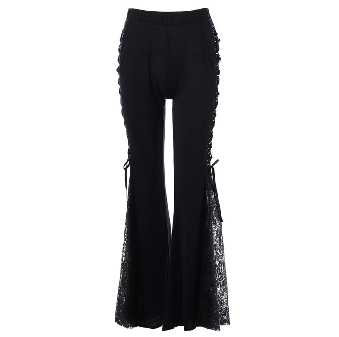 【お取り寄せ商品】ボトムス パンツ レース スリット サブカルチャー セクシー レースアップ ワイドパンツ リボン 病みかわいい