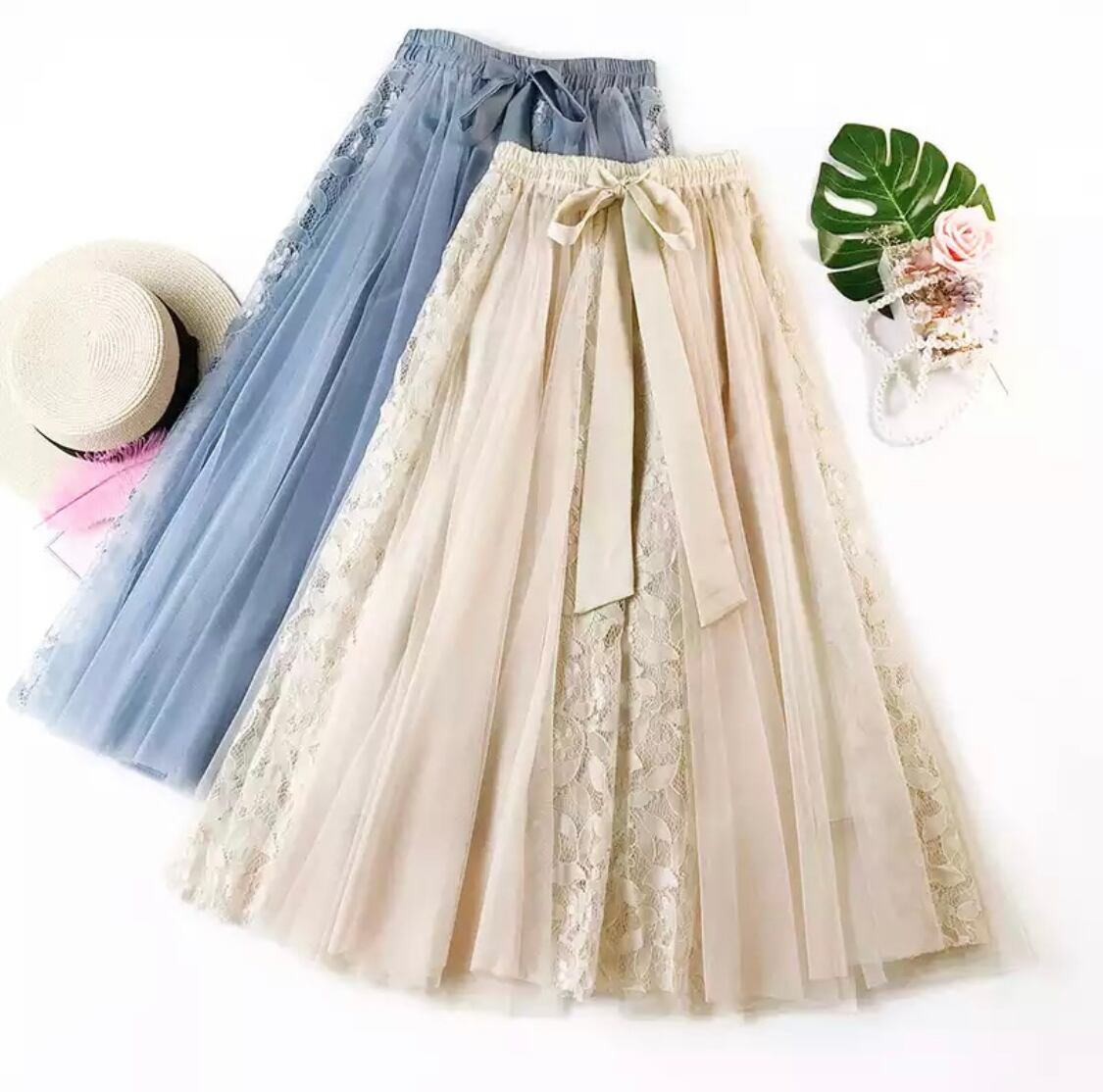 【お取り寄せ商品】スカート チュール リボン レース ミディアム パステル 姫 乙女 レディース