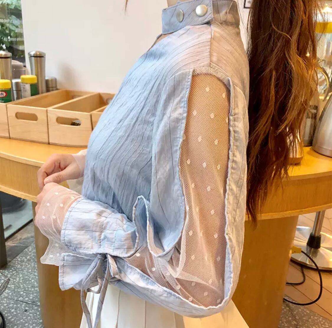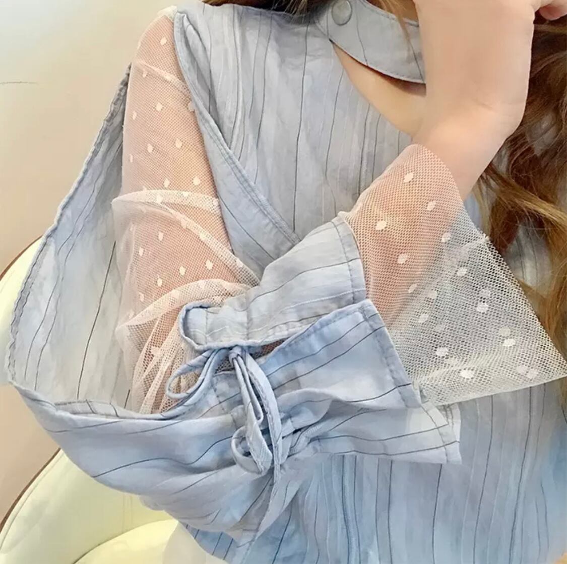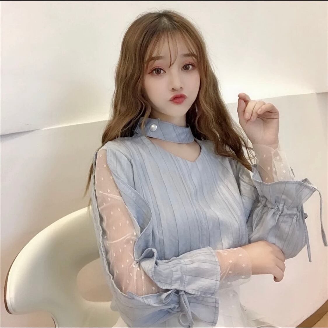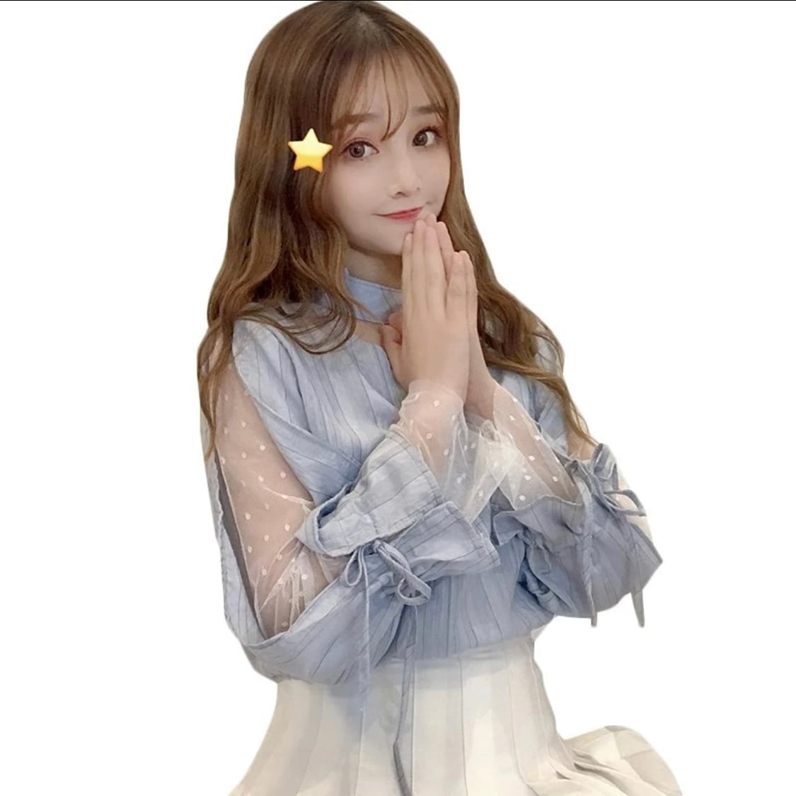 【お取り寄せ商品】トップス 透け感 Vネック 薄手 メッシュ リボン パステル レディース 韓国