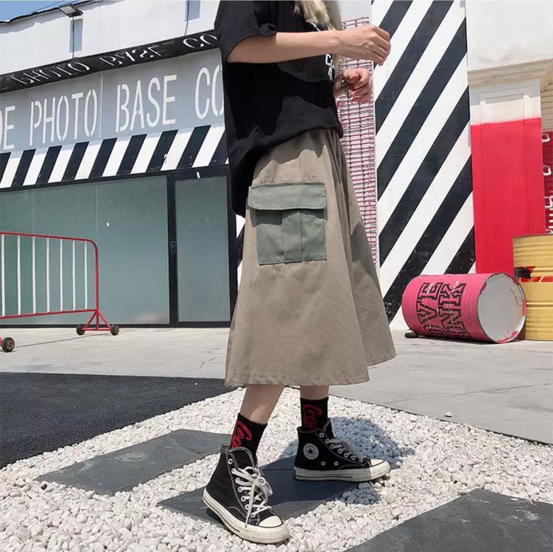 【お取り寄せ商品】スカート ボトムス カジュアル ミリタリー カーキ ミディアム丈 レディース アーミー ゆったり 原宿