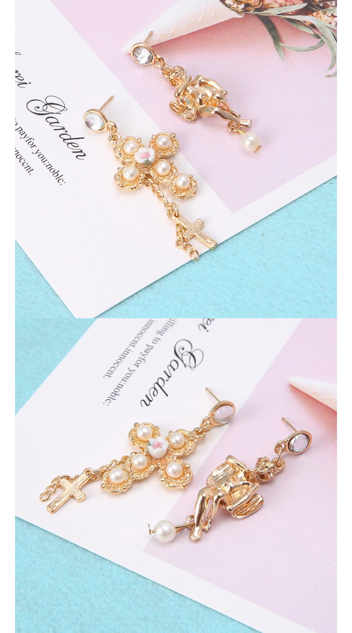 【お取り寄せ商品】ピアス アクセサリー パール 天使 十字架 ハート ゆめかわいい アンティーク 風 羽 チェーン