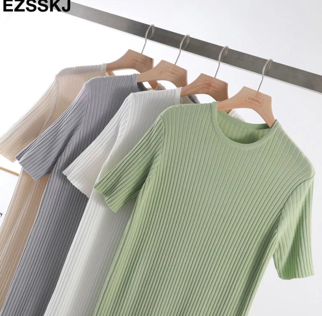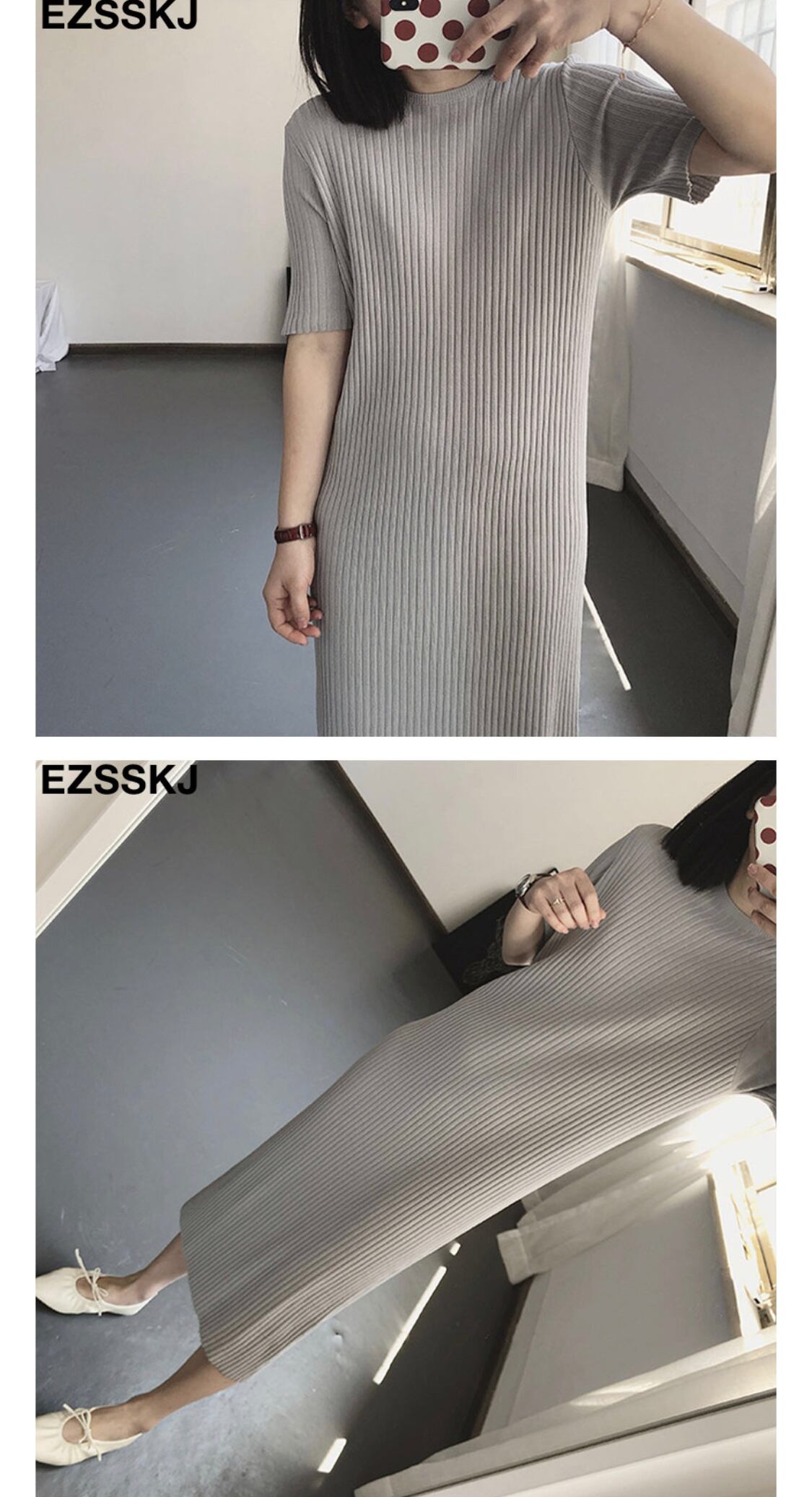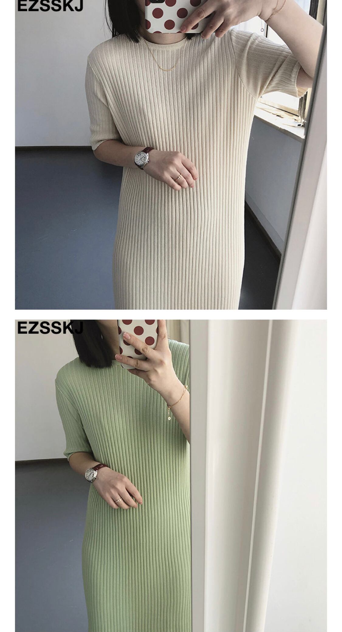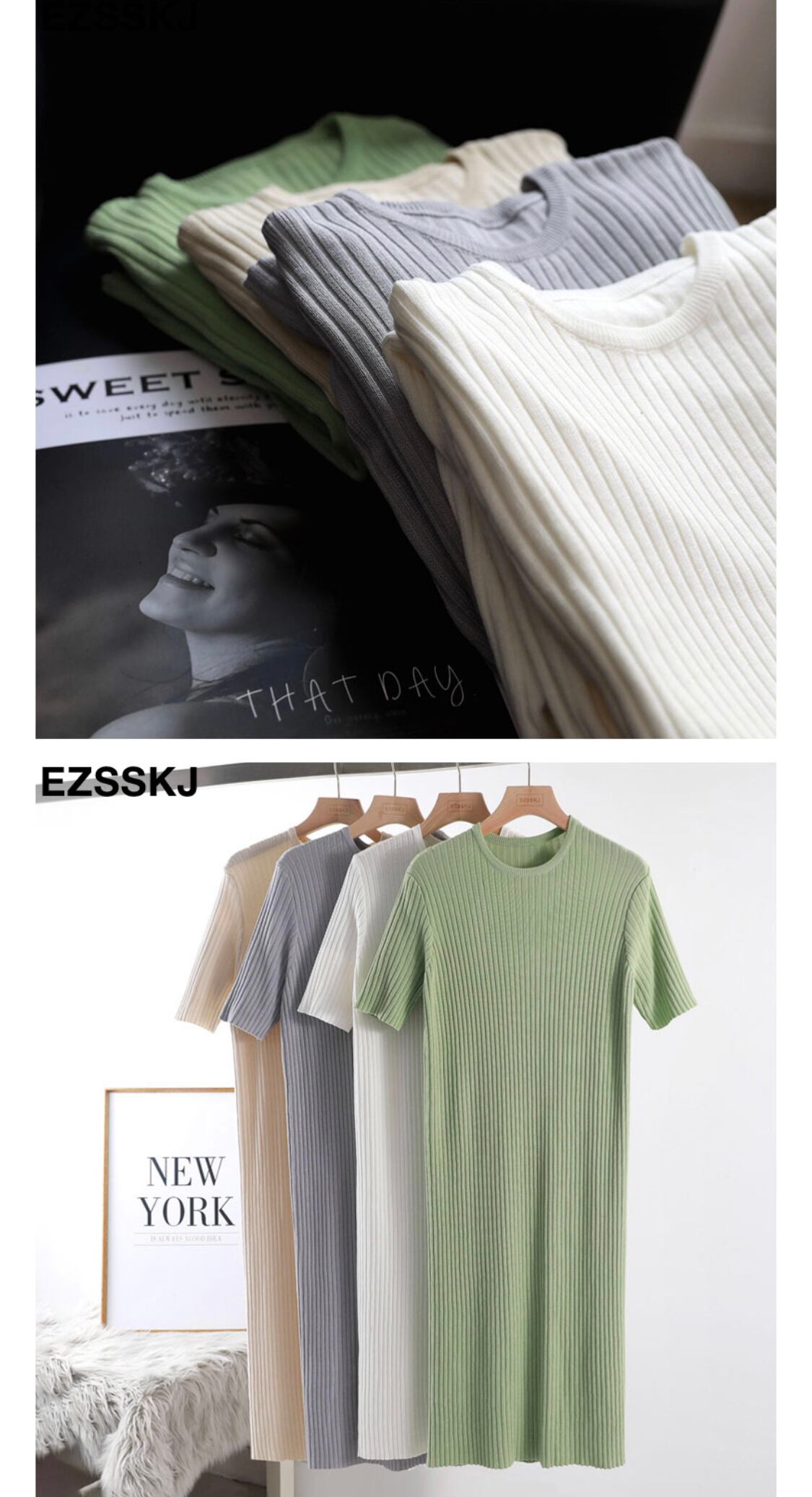 【お取り寄せ商品】ワンピース ニット 半袖 ミディアム丈 夏 サマーニット シンプル カジュアル レディース