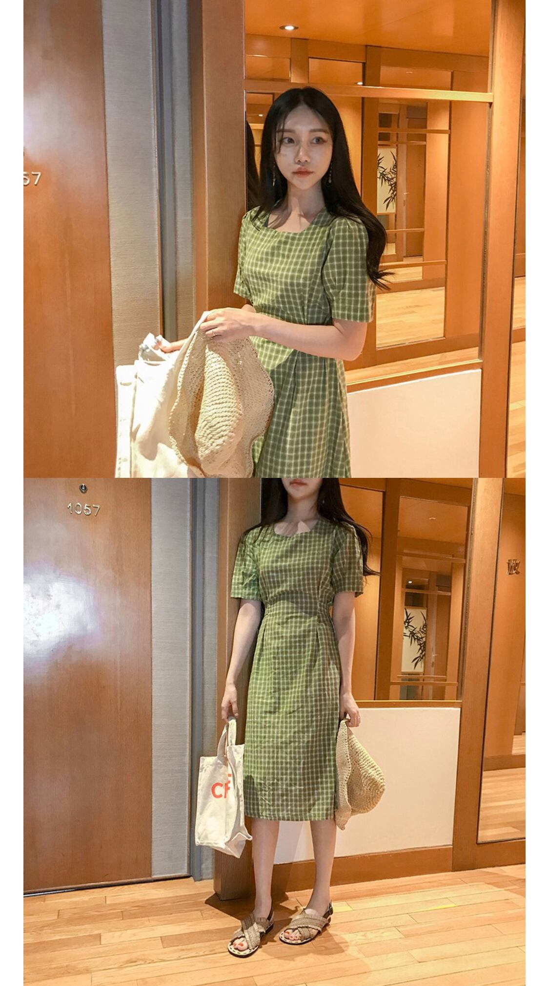 【お取り寄せ商品】ワンピース レトロ アンティーク 風 半袖 夏 チェック レディース