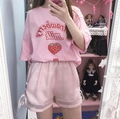 【お取り寄せ商品】Tシャツ 半袖 ピンク イチゴ いちご 苺 ゆめかわいい 夏 原宿 レディース