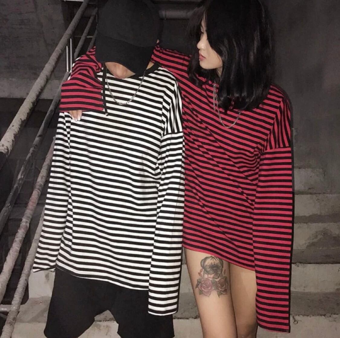 【お取り寄せ商品】Tシャツ ボーダー 長袖 丸首 原宿 ストリート トップス レディース