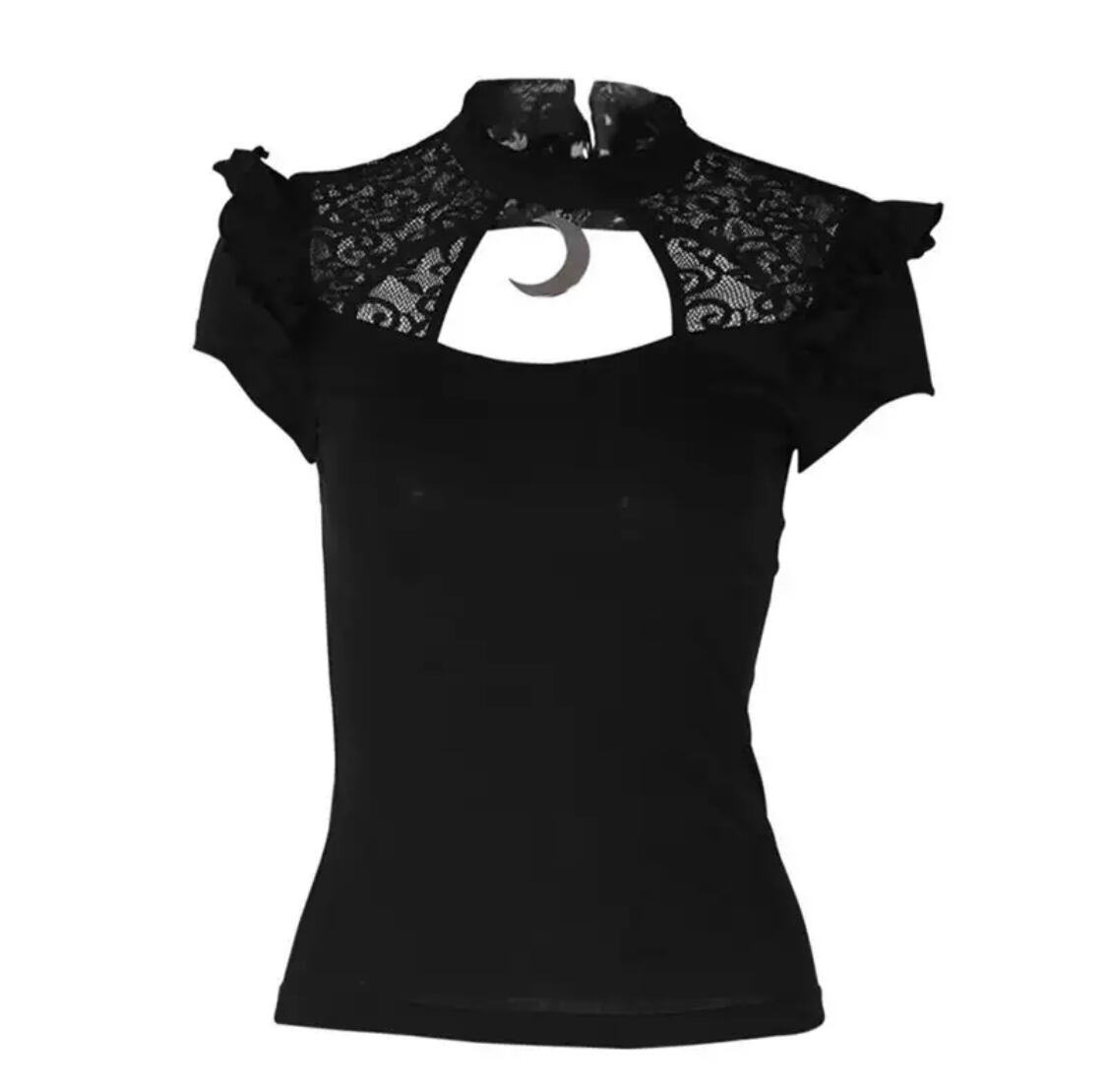 【お取り寄せ商品】トップス ハイネック 半袖 レース 月 ムーン レースアップ リボン フリル ダーク 病みかわいい ゴシック パンク 夏 レディース