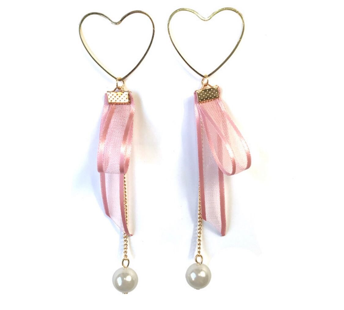 【お取り寄せ商品】ピアス アクセサリー ハート リボン パール チェーン 大きい 大人 かわいい パステル 乙女 プレゼント