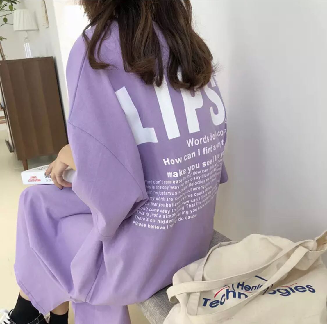 【お取り寄せ商品】ワンピース ビッグシルエット 5分丈 原宿 韓国 春 夏 ミディアムロング ストリート Tシャツワンピ