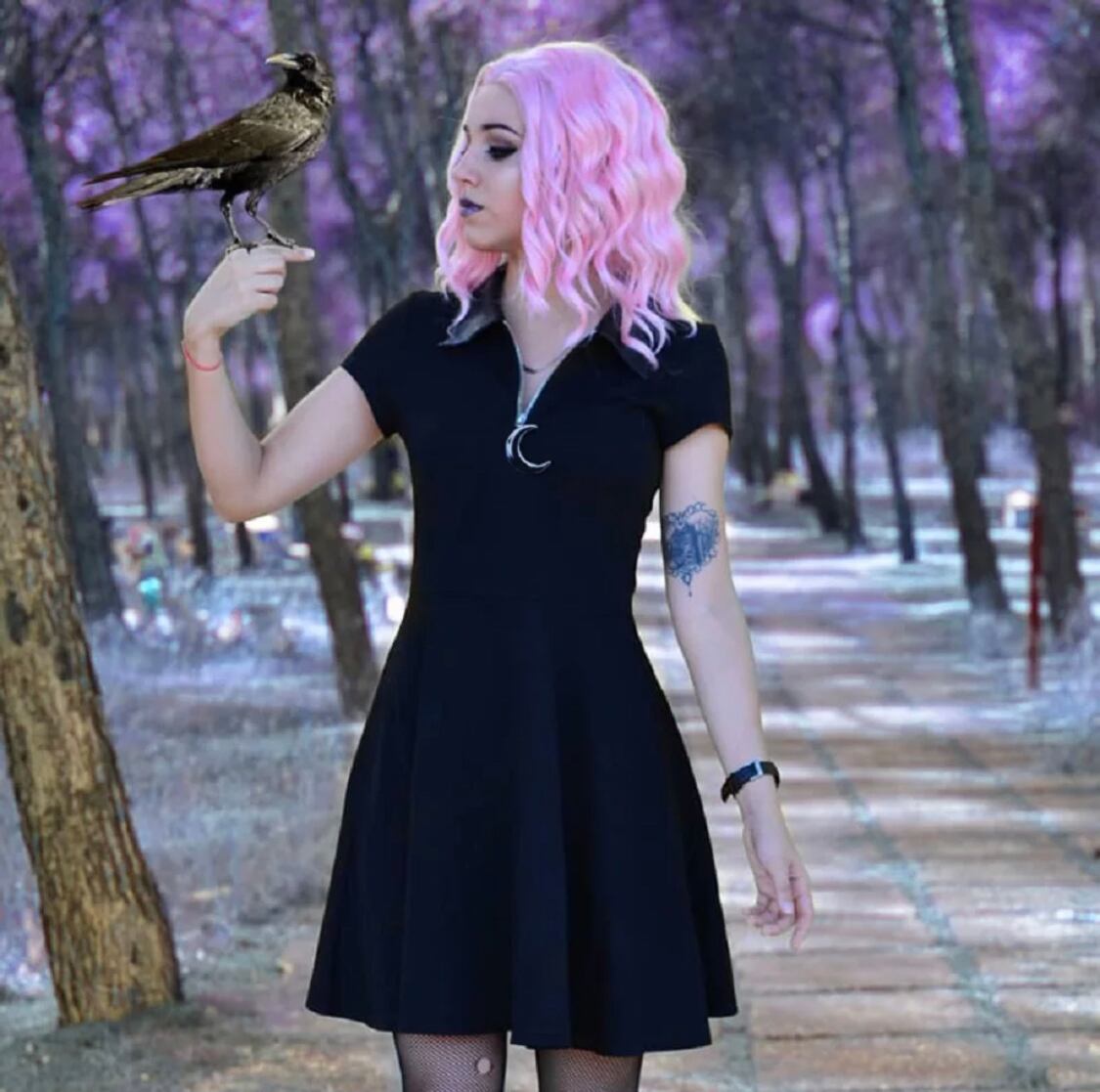 【お取り寄せ商品】ワンピース 半袖 ブラック ダーク 月 ムーン 襟付き 春 夏 レディース ゴシック ゆめかんいい 病みかわいい