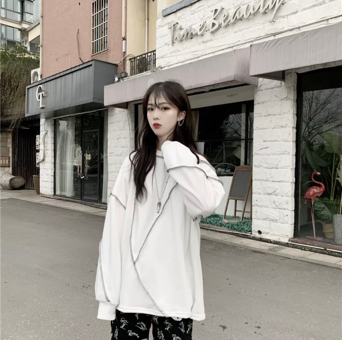 【お取り寄せ商品】ロンT トップス 長袖 秋 冬 AW ストリート 原宿 古着 風 モノトーン カジュアル レディース ストリート サブカルチャー
