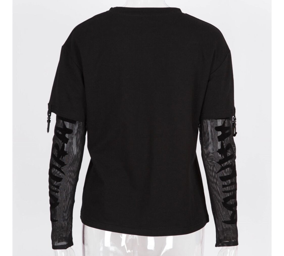 【お取り寄せ商品】トップス 長袖 半袖 メッシュ 透け感 ロック パンク ロンT サブカルチャー 病みかわいい ダーク 闇 レディース 原宿