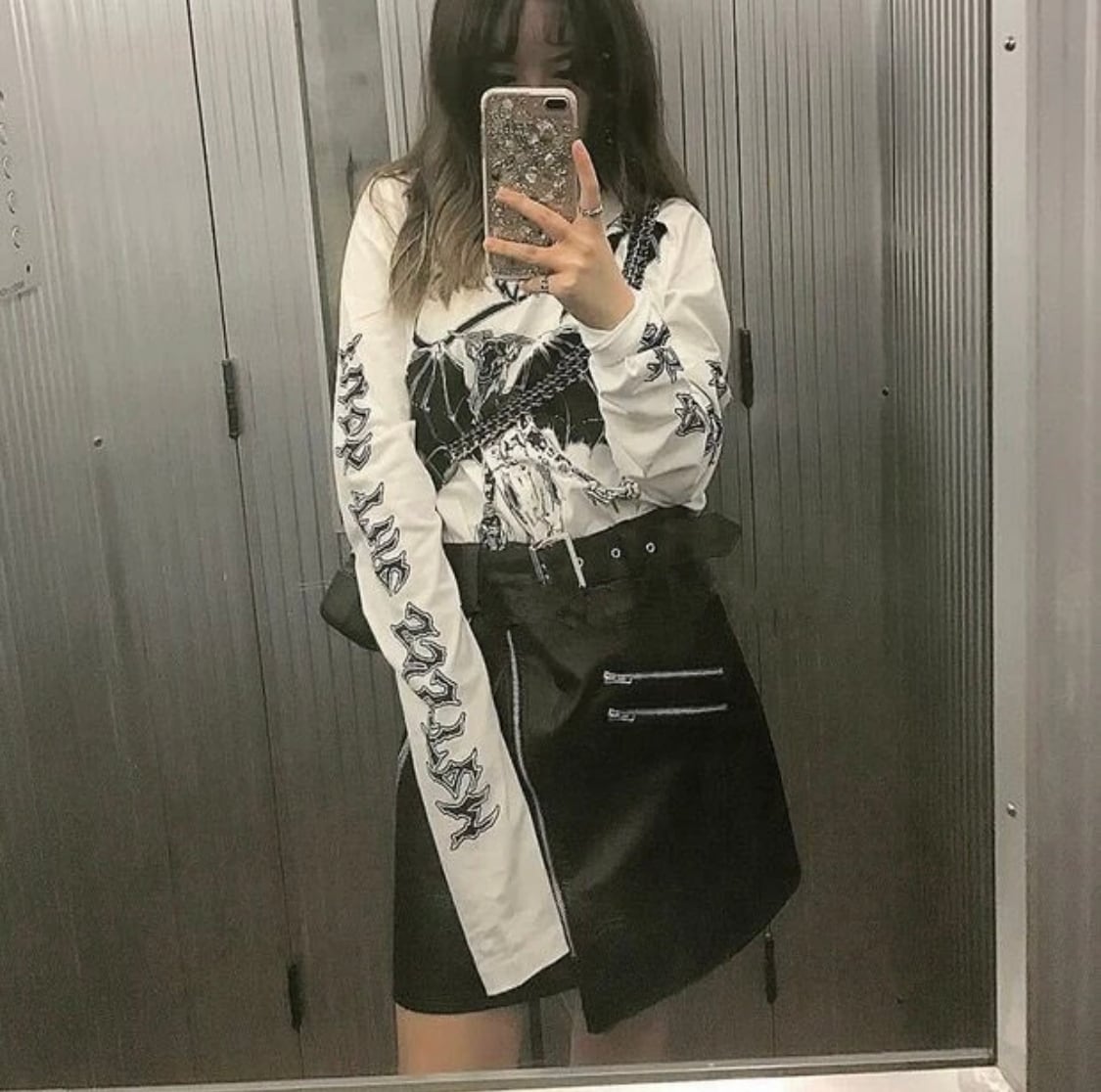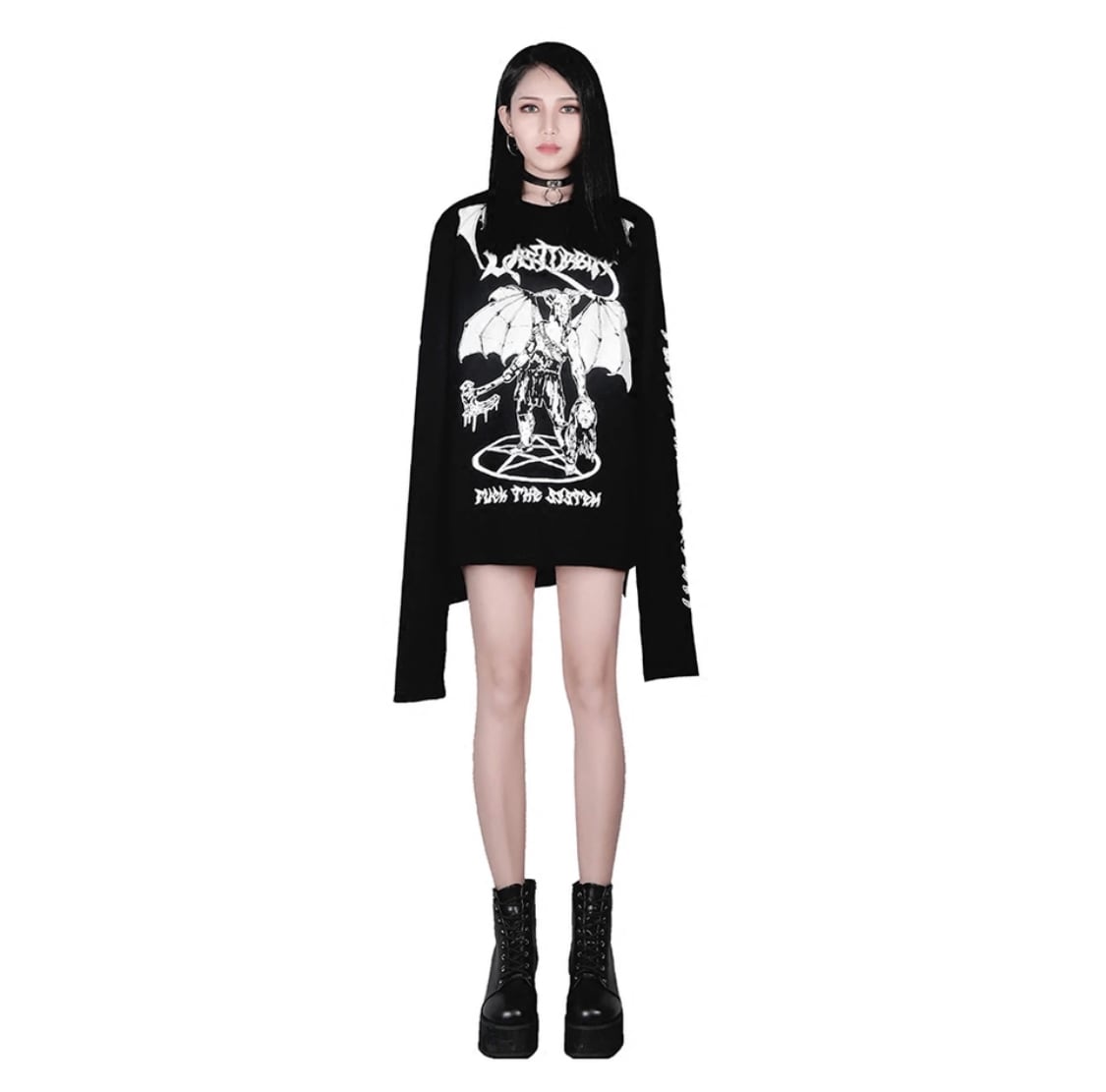 【お取り寄せ商品】トップス ロンT 長袖 パンク ロック ゴシック ストリート 原宿 スカル 男女兼用 カップル お揃い レディース メンズ 秋 冬 AW ストリート 原宿