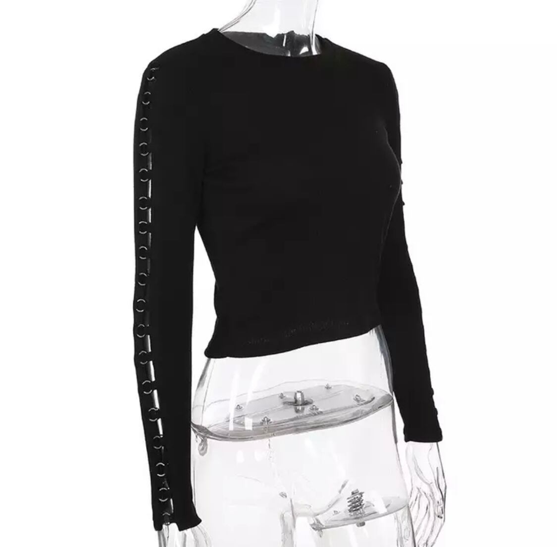 【お取り寄せ商品】トップス ロンT 長袖 ストリート サブカルチャー 原宿 セクシー ショート丈 丸首 レディース 秋 春 冬 AW