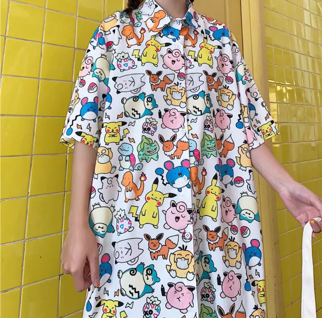 【お取り寄せ商品】シャツ 半袖 トップス 原宿 サブカルチャー ポケモン 古着 風 ストリート 春 夏 秋 冬 レディース