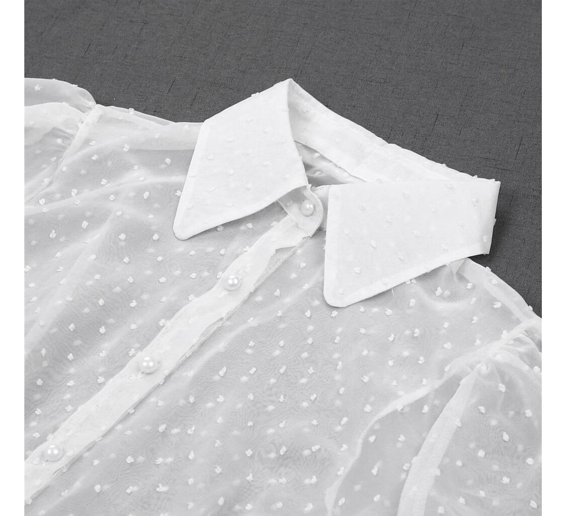 【お取り寄せ商品】シャツ トップス パフスリーブ ドット 七分丈 シースルー 原宿 レディース