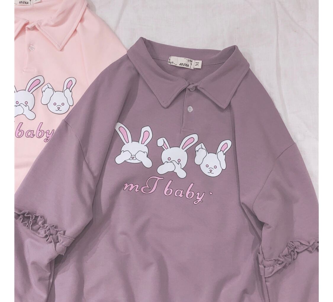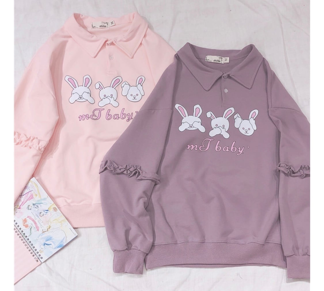 【お取り寄せ商品】トップス パーカー フリル 夢かわいい 原宿 パステル うさぎ 襟付き 秋 冬 長袖