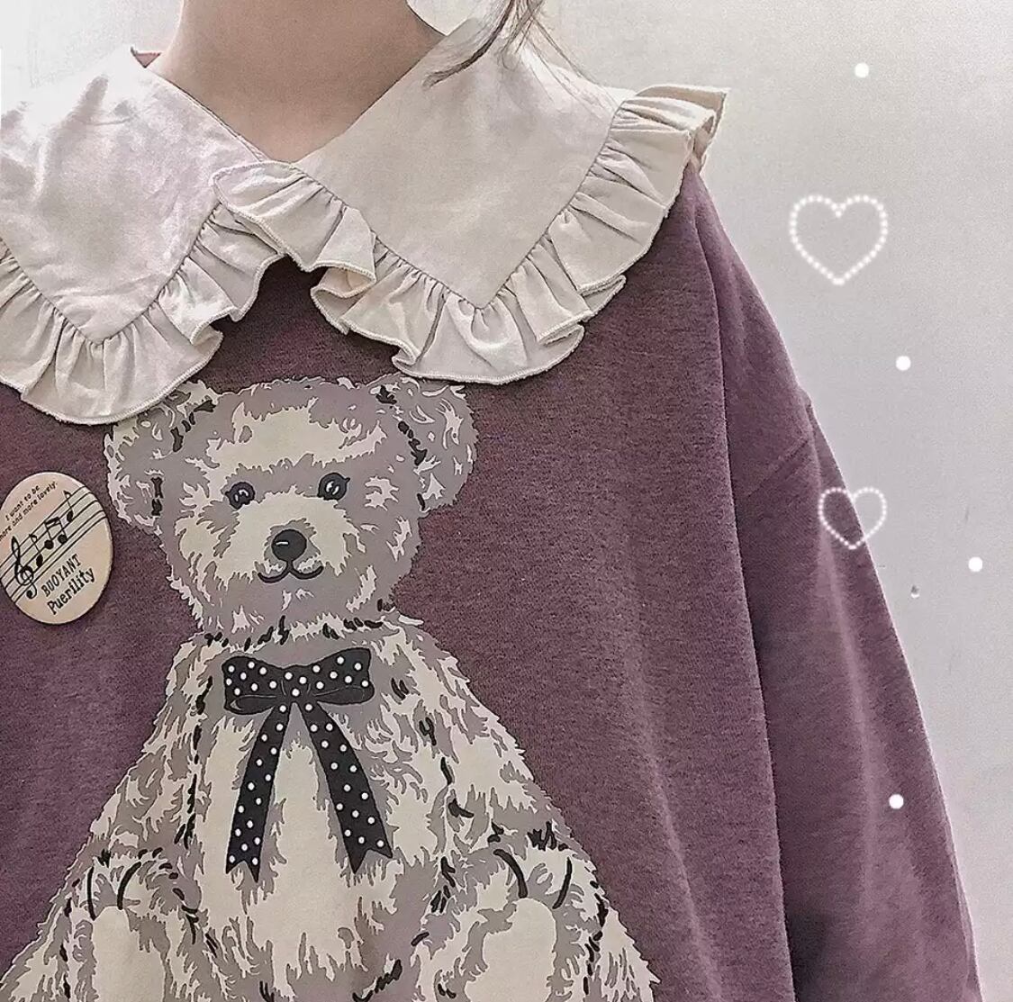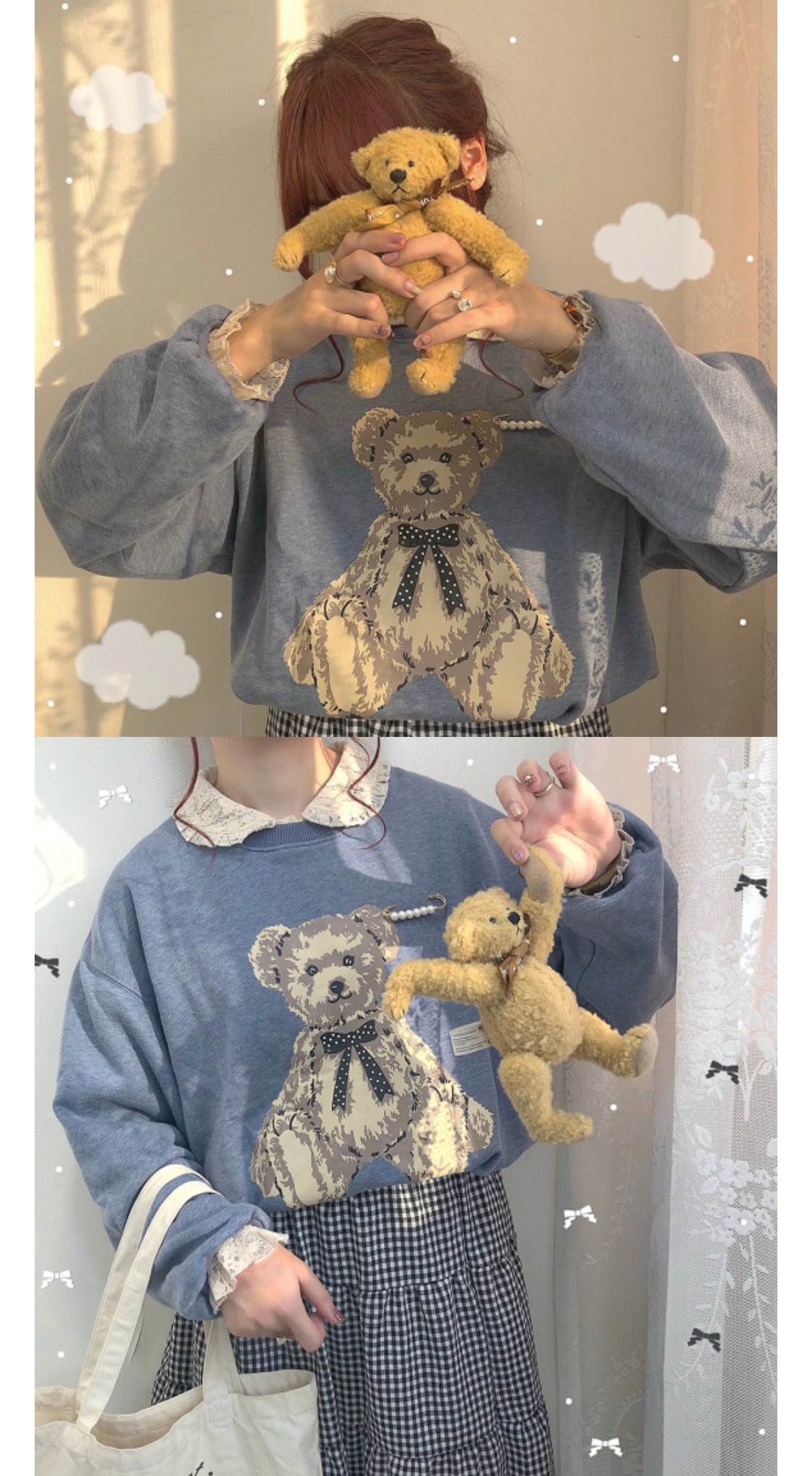 【お取り寄せ商品】パーカー トップス テディーベアー 原宿 秋 冬 レディース 古着 風 ゆったり 森ガール ゆめかわいい プルオーバー