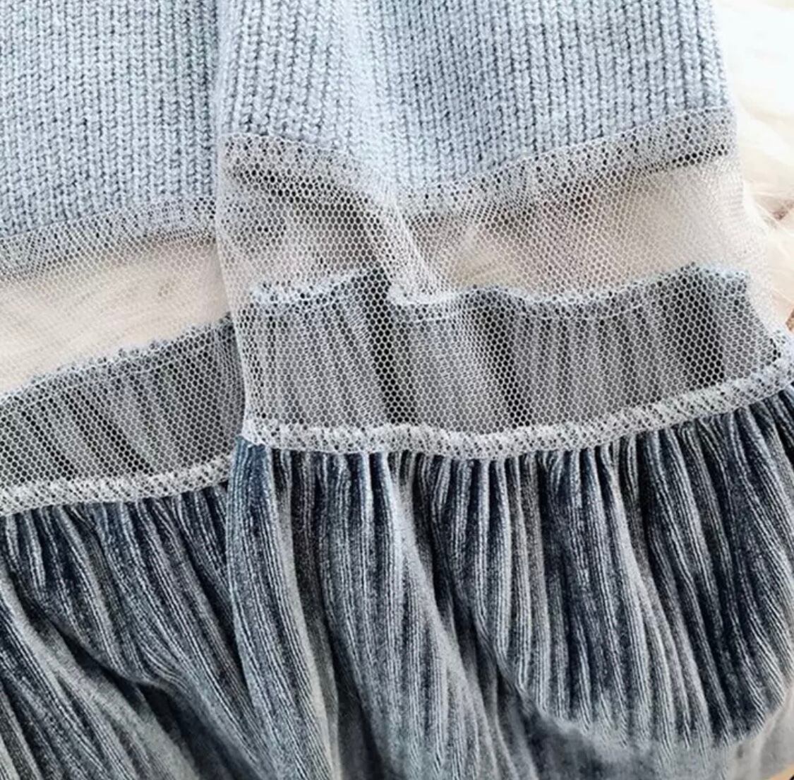 【お取り寄せ商品】ニット ワンピース リボン ベルト チュール ハイネック 秋 冬 レディース エレガント レトロ