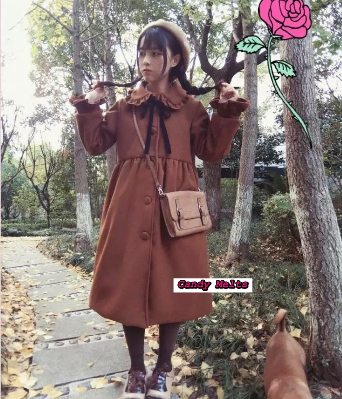 【お取り寄せ商品】アウター コート レディース フリル リボン Aライン パフスリーブ 秋 冬 ロリィタ ロリータ ゆめかわいい 森ガール
