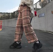 【お取り寄せ商品】ボトムス ワイドパンツ 秋 冬 レディース 原宿 ストリート 古着 風 ストリート レトロ アンティーク チェック