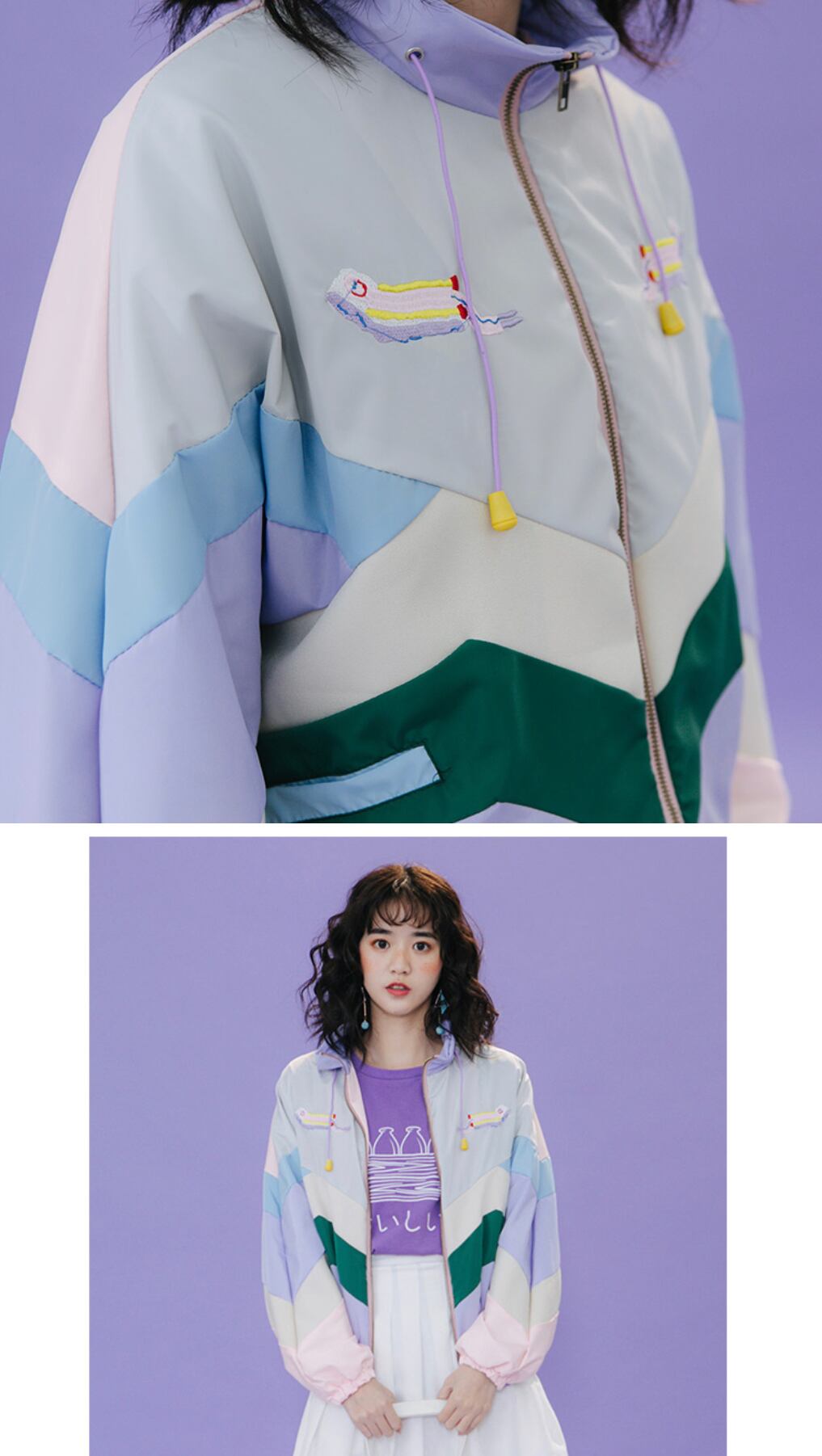 【お取り寄せ商品】ブルゾン アウター ジャンパー パステル 原宿 ゆめかわいい 古着 風 レトロ アンティーク おしゃれ レディース 刺繍