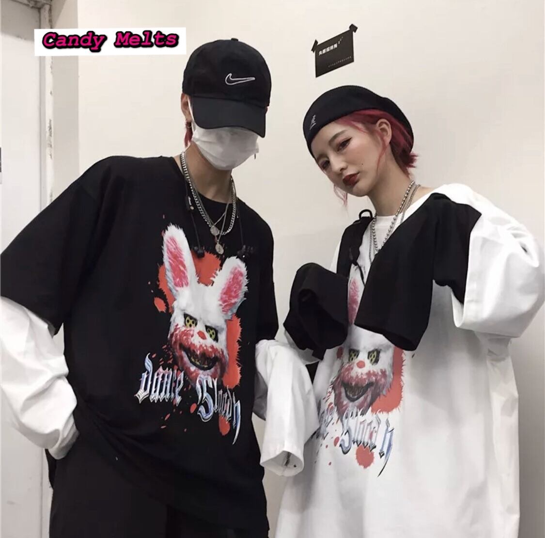 【お取り寄せ商品】Tシャツ ロンティー 原宿 サブカルチャー ストリート 病みかわいい グロ レディース メンズ 男女兼用 ペアルック おそろコーデ 春 秋 冬 長袖