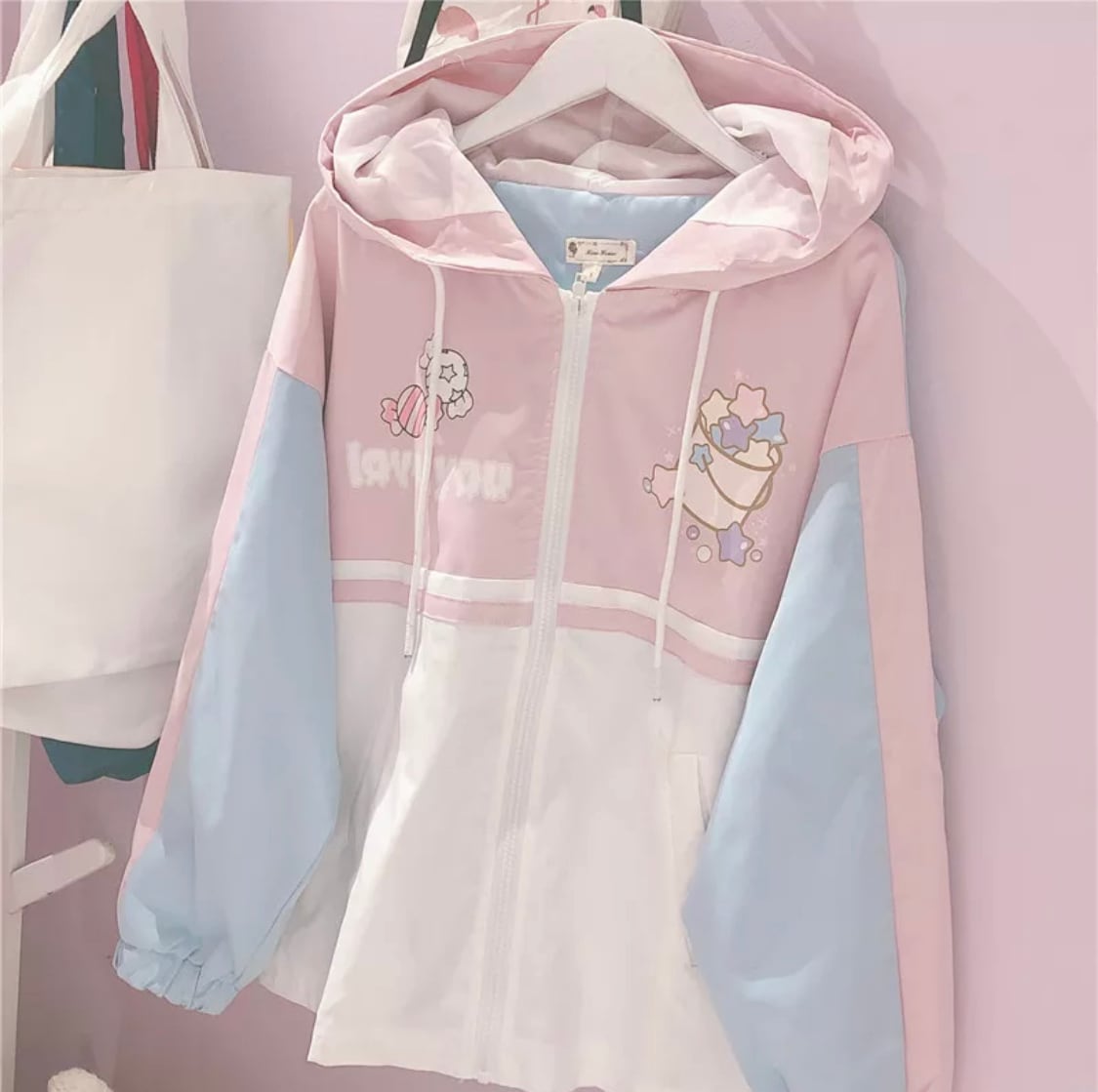 【お取り寄せ商品】アウター ジャケット ウィンドブレーカー パステル ゆめかわいい 星 レディース 春 秋 冬 原宿