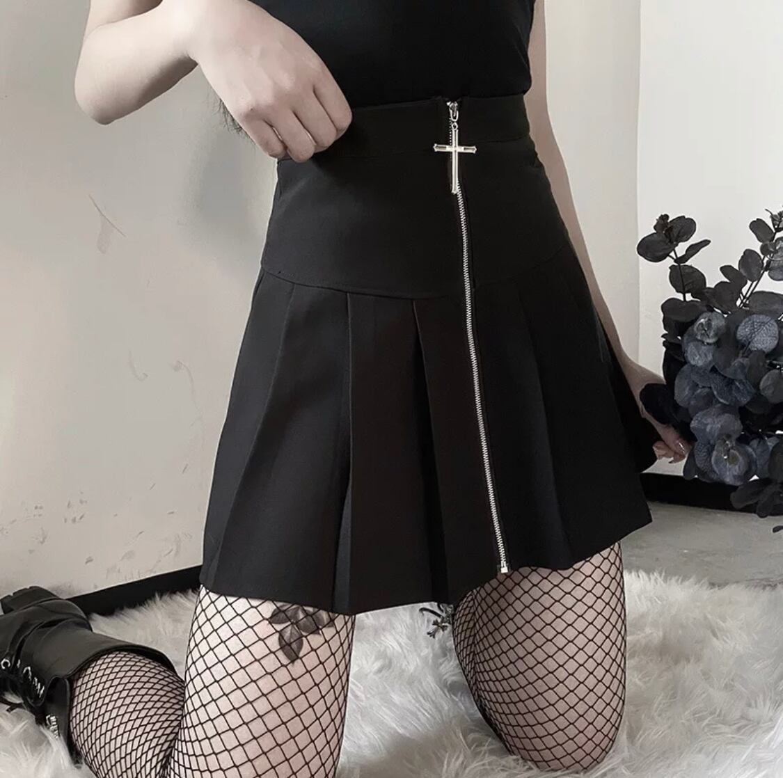 【お取り寄せ商品】スカート サブカルチャー 十字架 プリーツ ゴシック 原宿 レディース ミニスカ