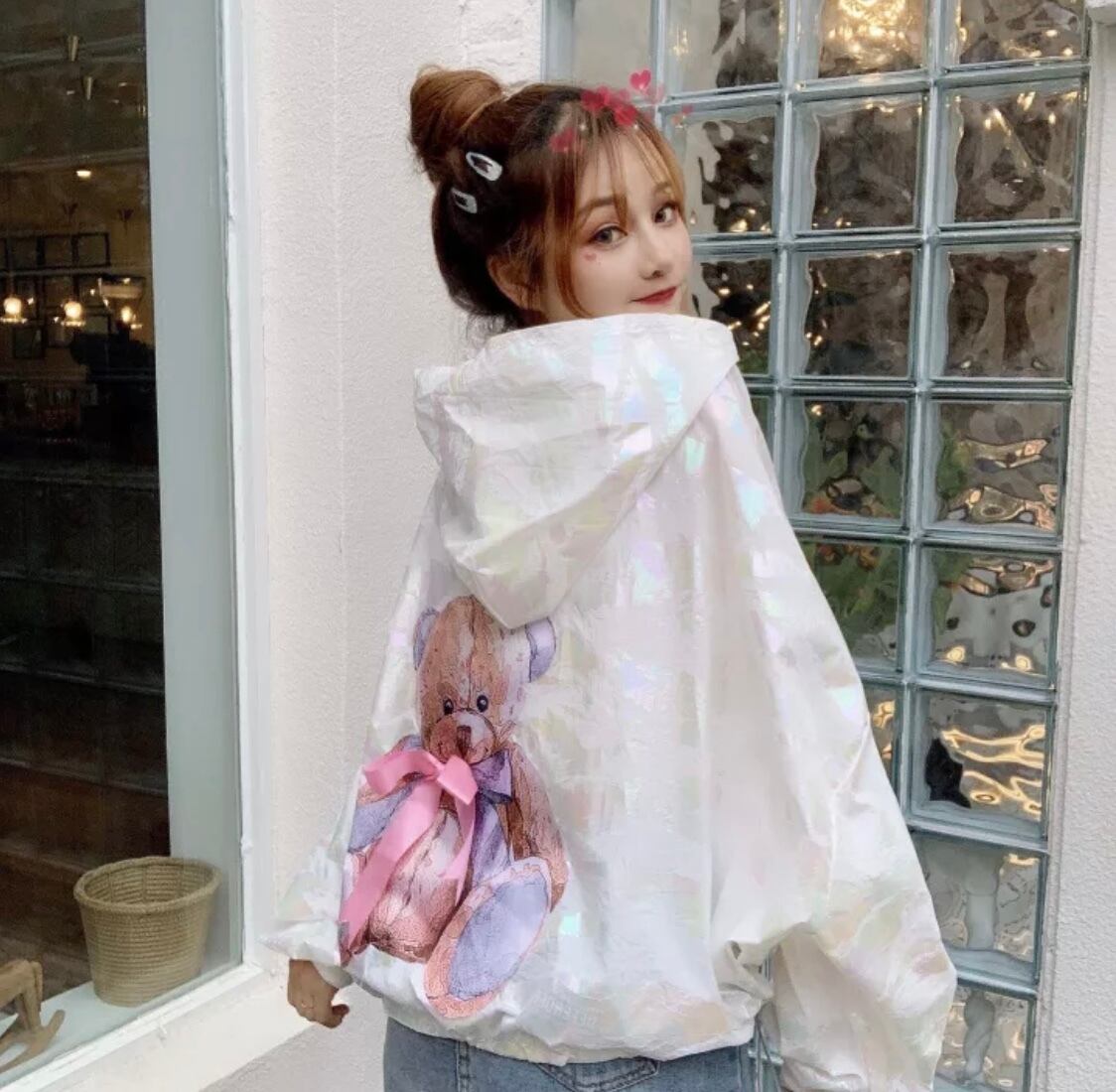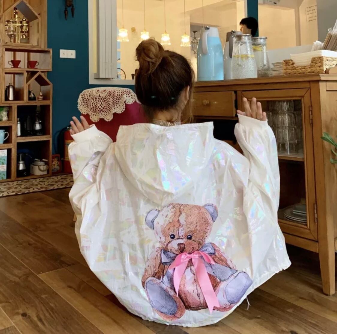 【お取り寄せ商品】アウター ウィンドブレーカー レディース 原宿 ゆめかわいい パステル オーロラ テディーベア クマ 熊 くま リボン 春 長袖