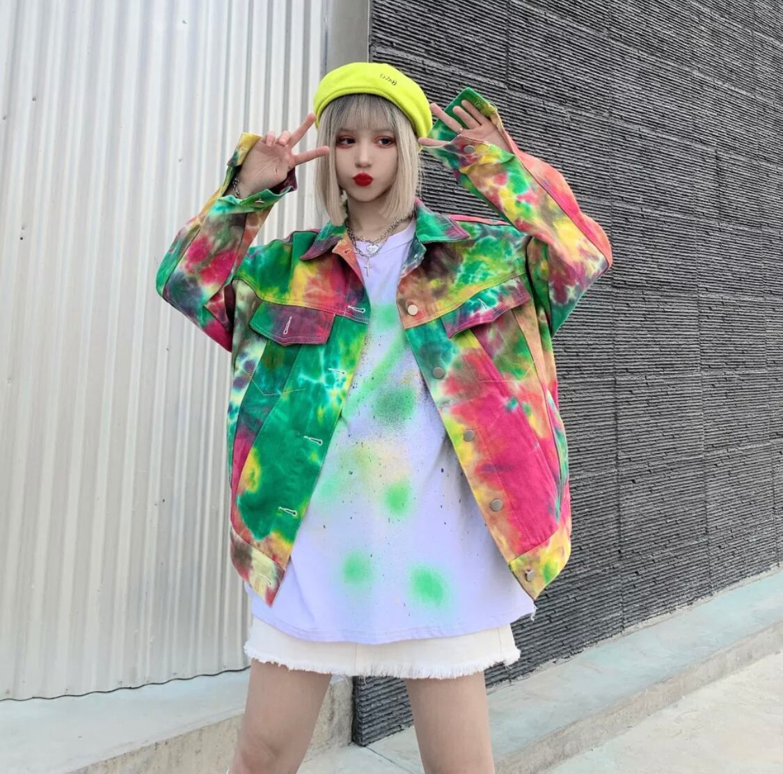 【お取り寄せ商品】ジージャン ストリート ジャケット 原宿 グラフィティー マーブル レディース アウター