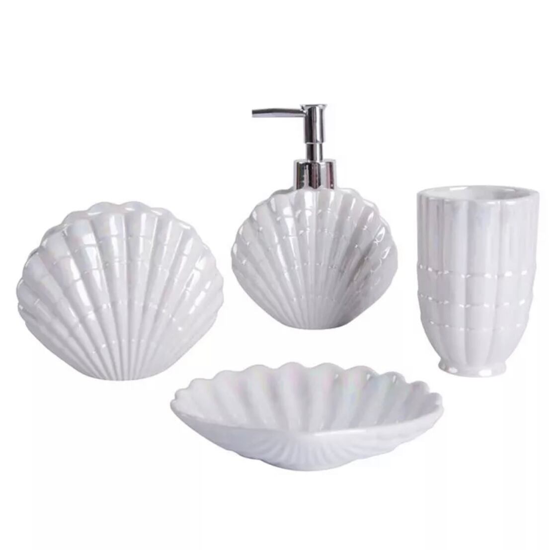 【お取り寄せ商品】4点セット ハンドソープボトル 歯ブラシスタンド ソープディッシュ 小皿 コップ カップ シェル おしゃれ 雑貨 ゆめ