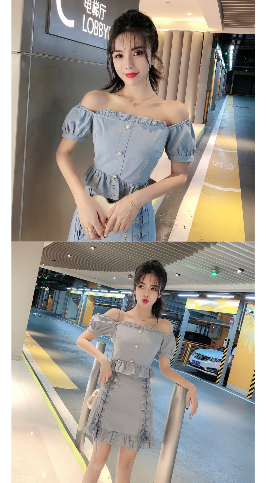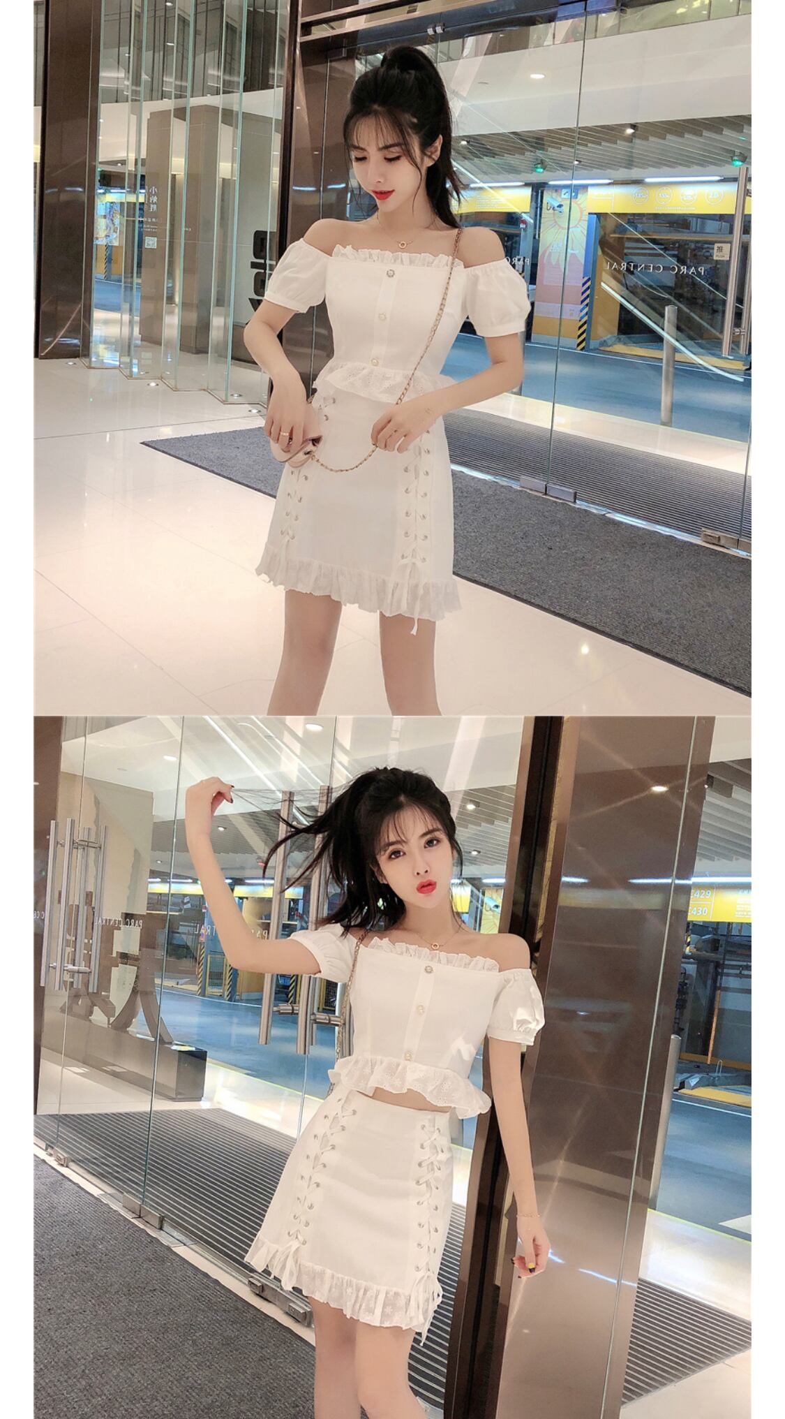 【お取り寄せ商品】 セットアップ トップス スカート ミニスカート 半袖 オフショルダー パフスリーブ レースアップ 編み上げ フリル セクシー 大人 原宿 タイト レース シャツ