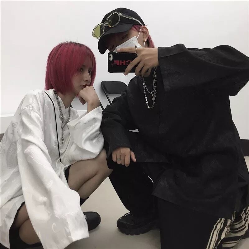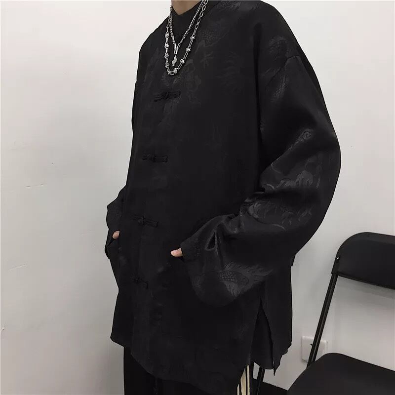 【お取り寄せ商品】トップス チャイナ 中華 サブカルチャー 原宿 ユニセックス 長袖 シャツ ゆったり 男女兼用