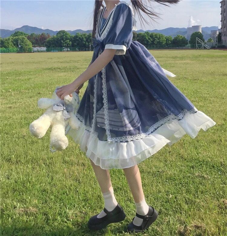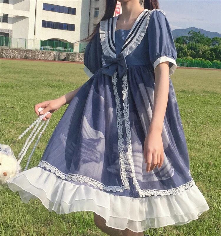 【お取り寄せ商品】ワンピース 半袖 長袖 ゆめかわいい 病み可愛い レディース ロリィタ パフスリーブ フリル チュール レース セーラー Aライン ふんわり 原宿