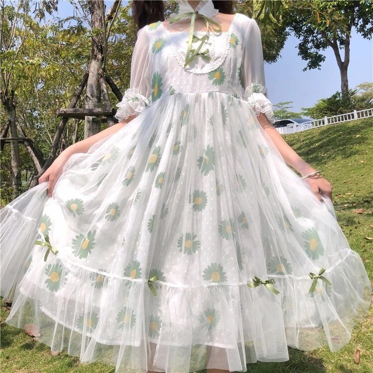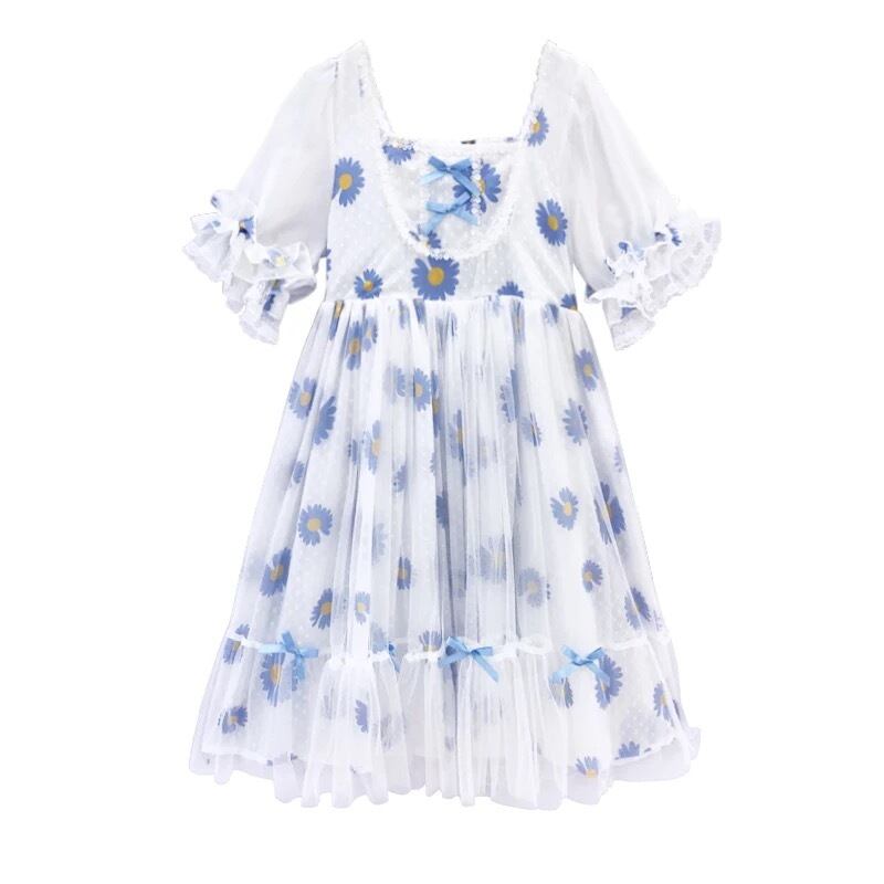 【お取り寄せ商品】ワンピース ロリィタ ゆめかわいい 原宿 花柄 チュール フリル リボン レース ふんわり 半袖
