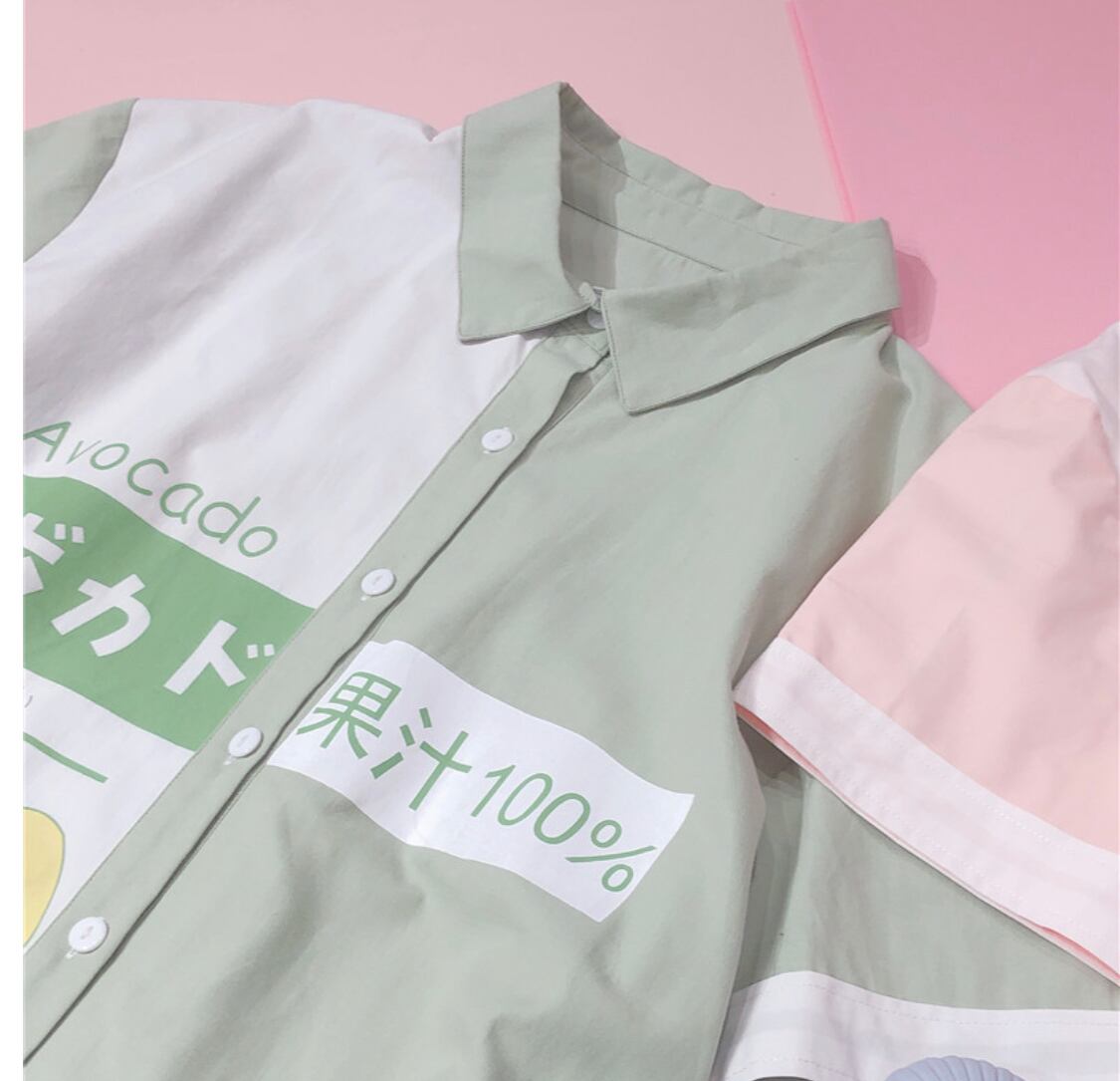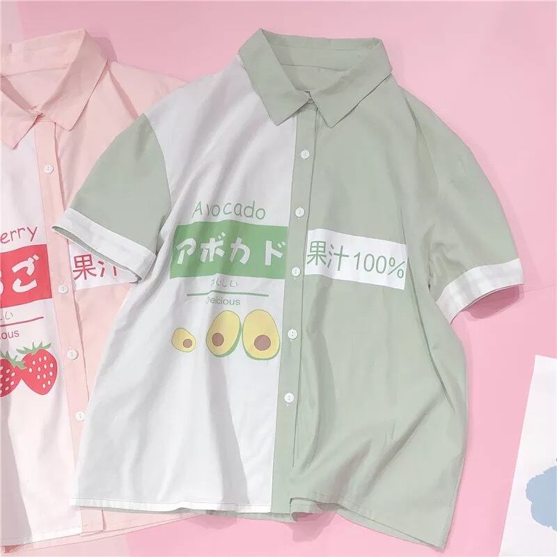 【お取り寄せ商品】シャツ 半袖 夏 原宿 ゆめかわいい パステル イチゴ イチゴミルク レディース