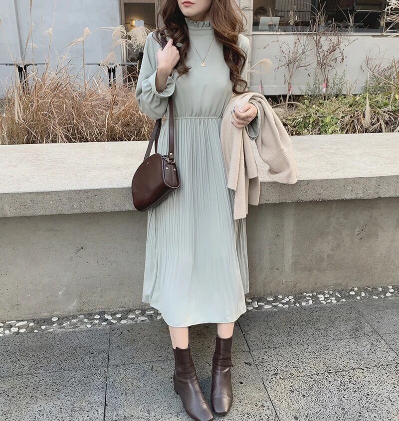 【お取り寄せ商品】ワンピース 長袖 シンプル カジュアル レディース シフォン