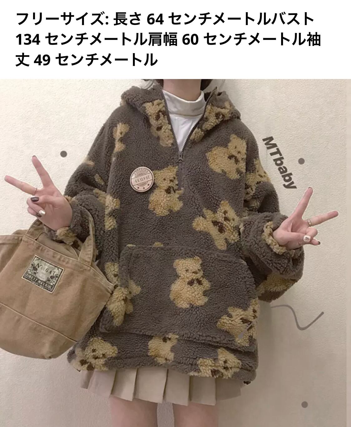 【お取り寄せ商品】ボア パーカー くま クマ 熊 テディーベア ゆめかわいい 原宿 秋 冬 レディース トップス