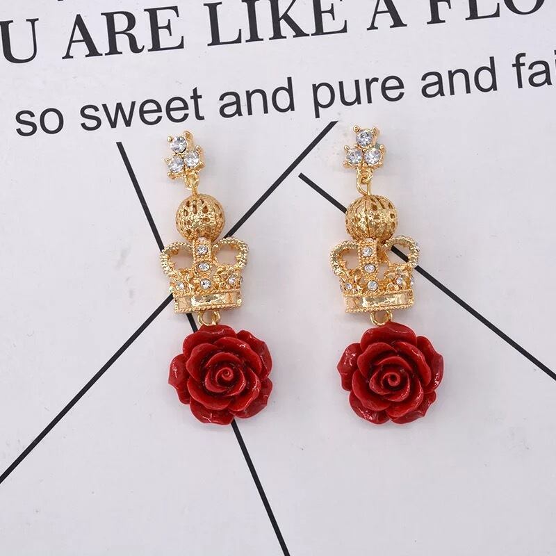 【お取り寄せ商品】ピアス アクセサリー レディース 薔薇 バラ クラウン ゴールド キラキラ
